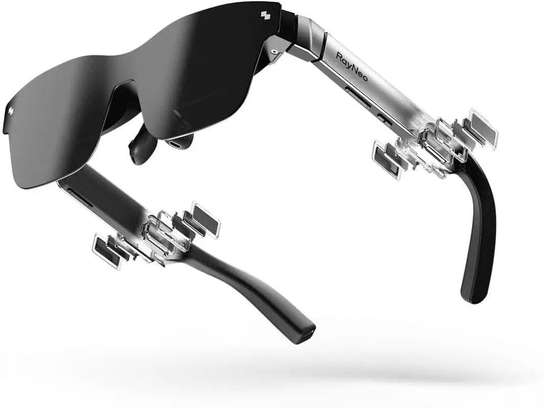 - [All-Around Protection]: RayNeo Whisper Mode 2.0 enhances privacy with superior sound cancellation, making it ideal for use near sleeping individuals. TÜV certification ensures eye comfort by reducing blue light and flicker. Through a partnership with Lensology, it offers personalized myopic lens customization for a tailored experience.