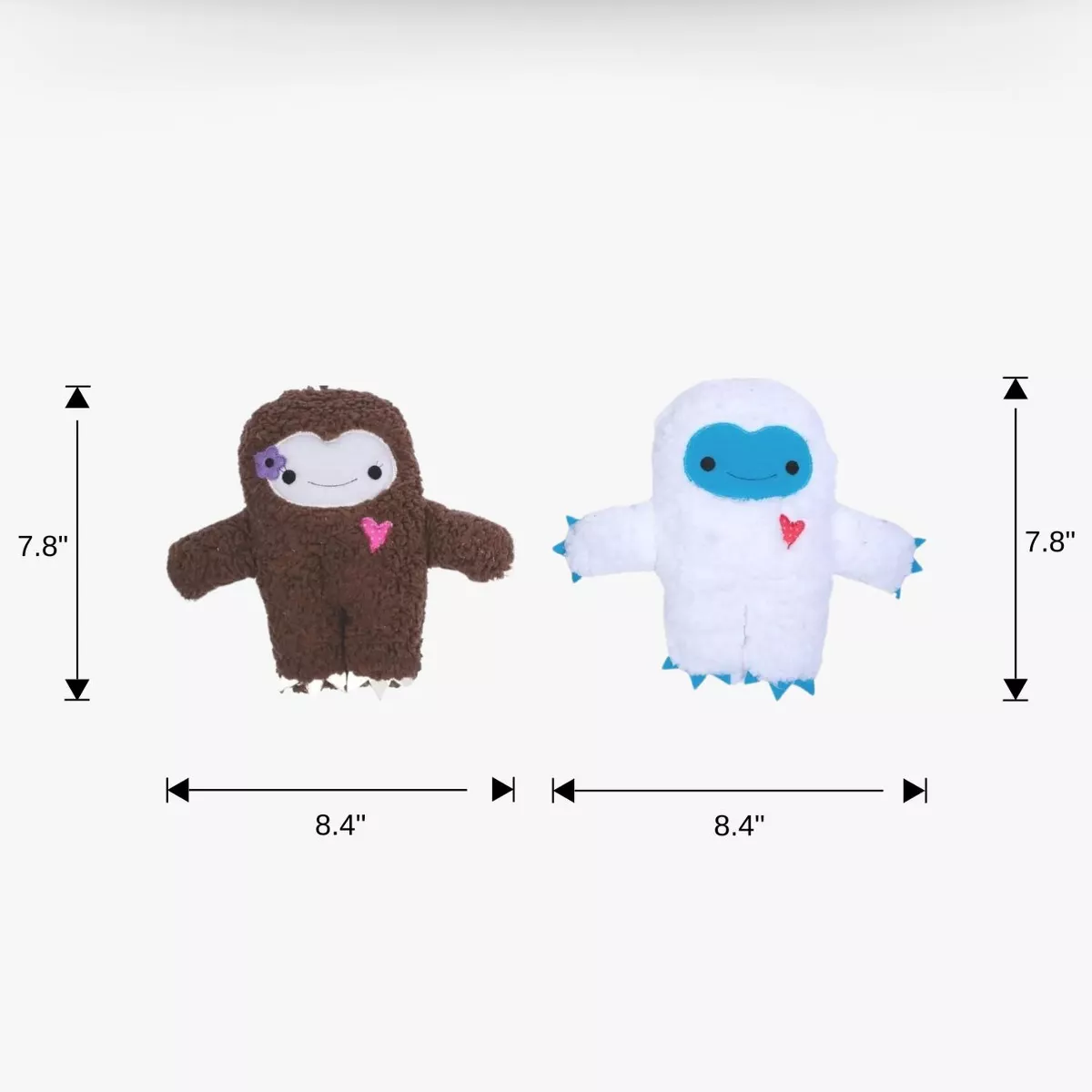 This magical duo brings the charm of winter straight to your dog’s toy collection, featuring a cuddly brown yeti and his snow-white frosty friend. Crafted with love for pets, these toys are built to withstand hours of playful adventures while still being soft enough for snuggles. Packed with crinkle paper and squeakers, every moment spent with these whimsical yetis will keep your dog’s tail wagging.