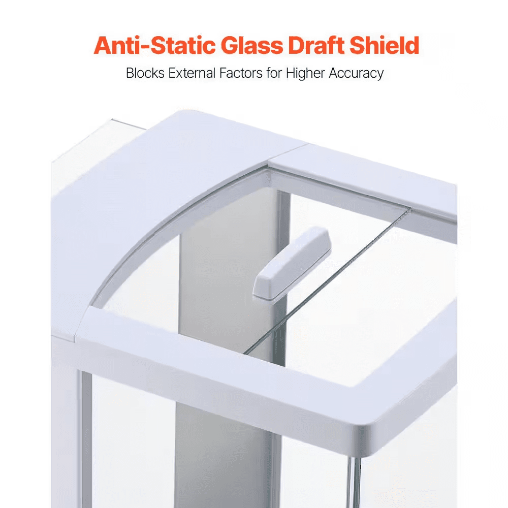 High Precision Analytical Balance with Draft Shield. This lab scale provides 0.0001 g accuracy, 220 g capacity, and ≤3s stabilization time. Easily switch between g/oz/ CT/mg units for various laboratory needs. It features an RS232 interface, a glass draft shield, and a 3.5 in. stainless steel pan, meeting the precision weighing needs of various fields.