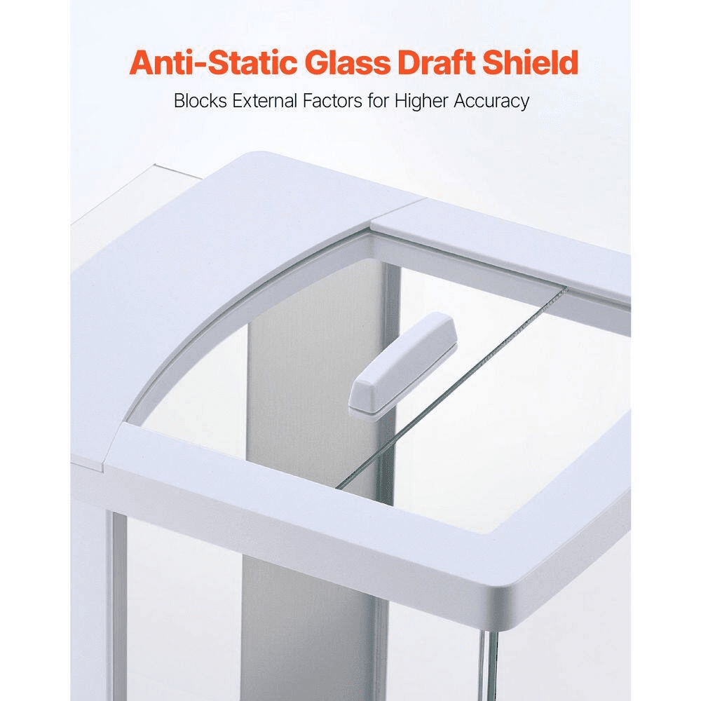 High Precision Analytical Balance with Draft Shield. This lab scale provides 0.0001 g accuracy, 220 g capacity, and ≤3s stabilization time. Easily switch between g/oz/ct/mg units for various laboratory needs. It features an RS232 interface, a glass draft shield, and a 3.5in., stainless steel pan, meeting the precision weighing needs of various fields.