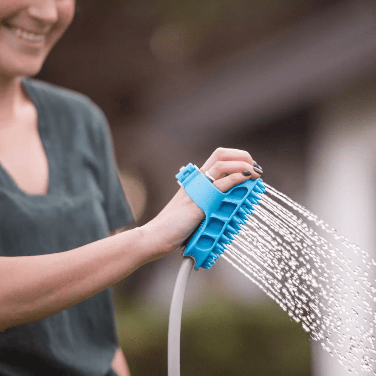 Experience the future of pet grooming with the Aquapaw Pet Bath Brush Pro. This multifunctional tool combines a dog bath brush scrubber, massager, and shower attachment to wash your dog. Crafted from 100% premium silicone, it ensures durability and comfort. The 8-foot dog washing hose attachment includes adapters for both shower and garden hoses, providing versatile use. Adjustable water pressure settings make bath time easy and enjoyable.