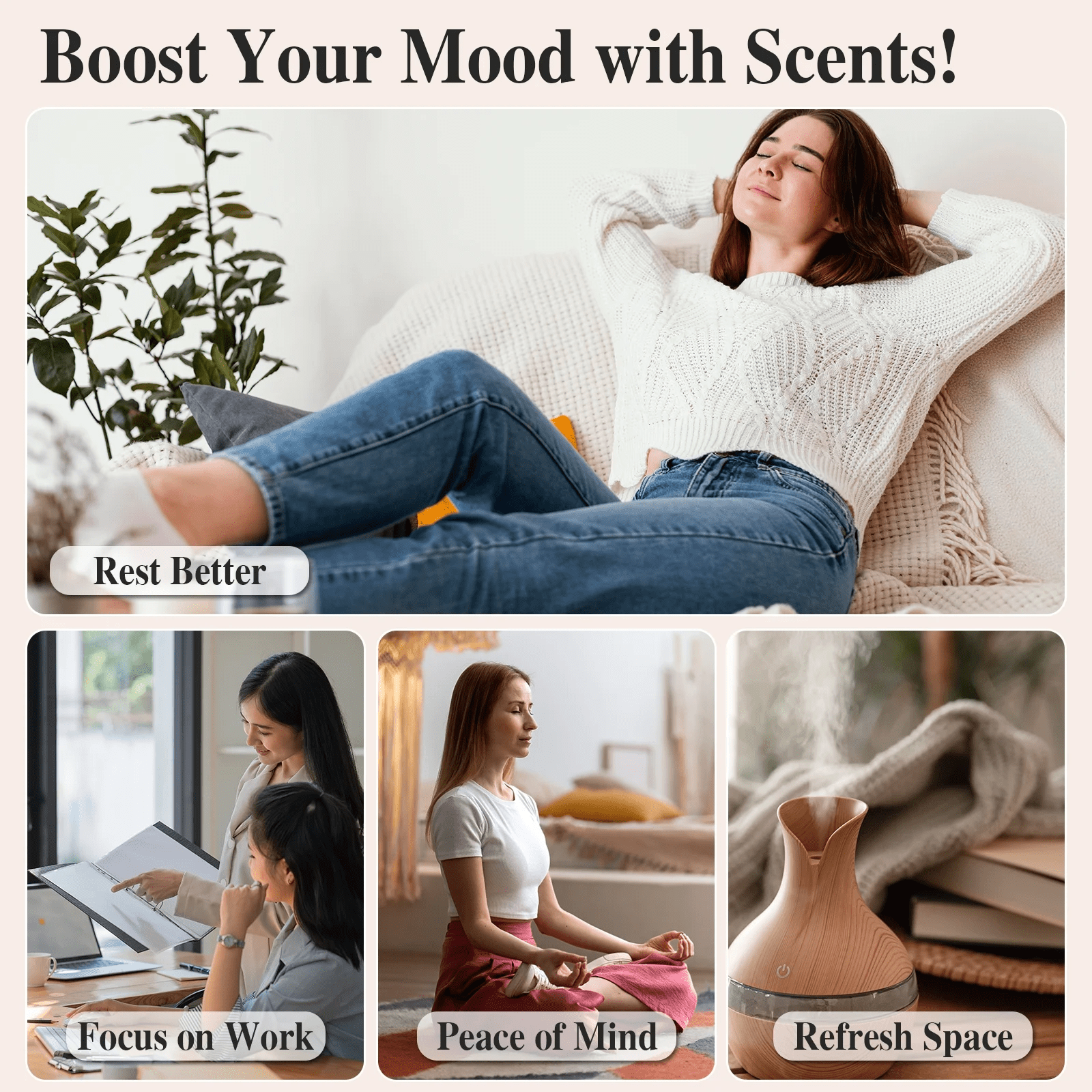 - Diversified Choices – Lavender, Jasmine, Eucalyptus, Vanilla, Frankincense, Peppermint, Sandalwood, Sweet Orange, Ylang Ylang, Rose, Bergamot, Tea Tree, Cinnamon, Geranium, Patchouli, Citronella, Lemongrass, Rosemary, Clary Sage, Chamomile Essential Oil.