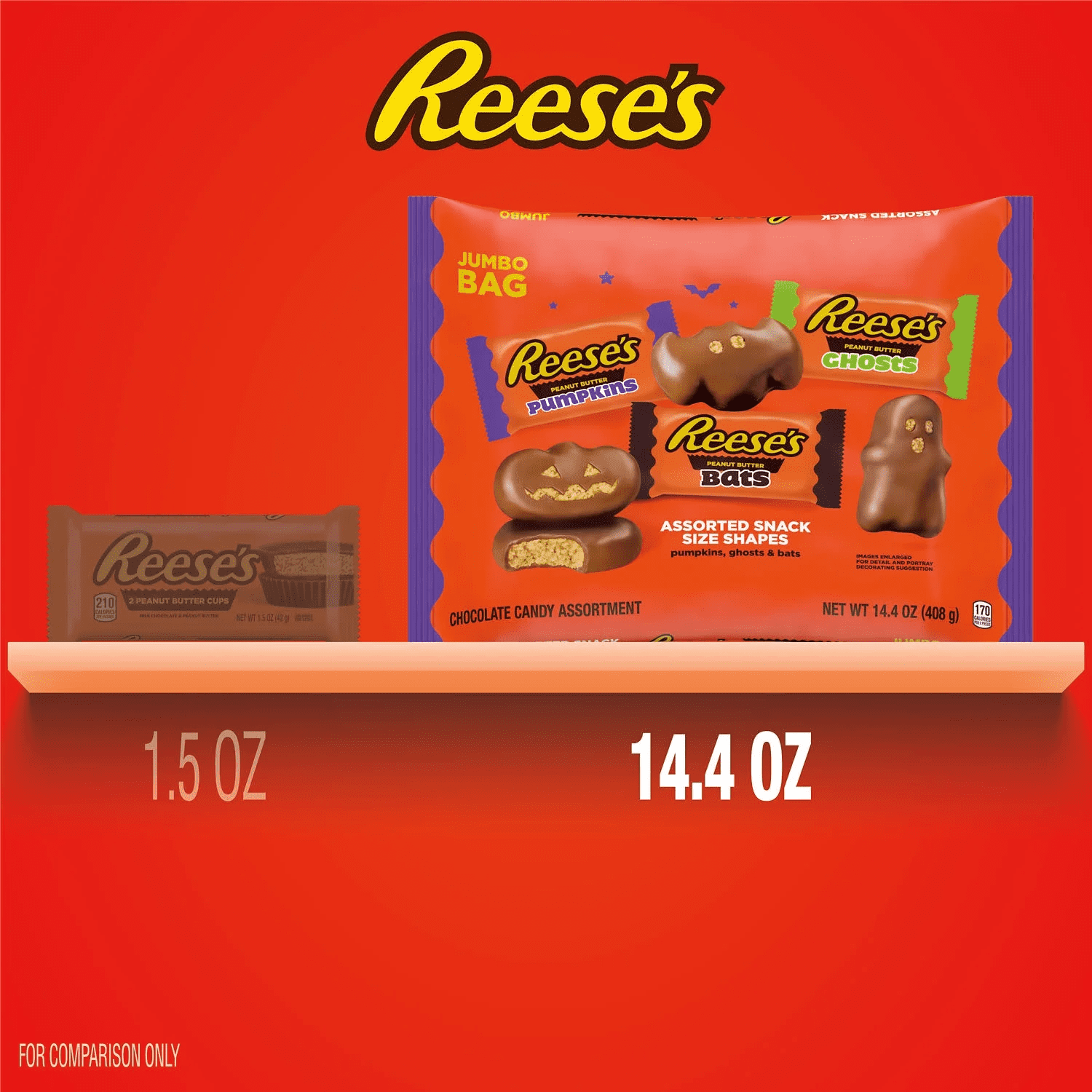 - Includes REESE’S milk chocolate peanut butter pumpkins, ghosts and bats snack size candy