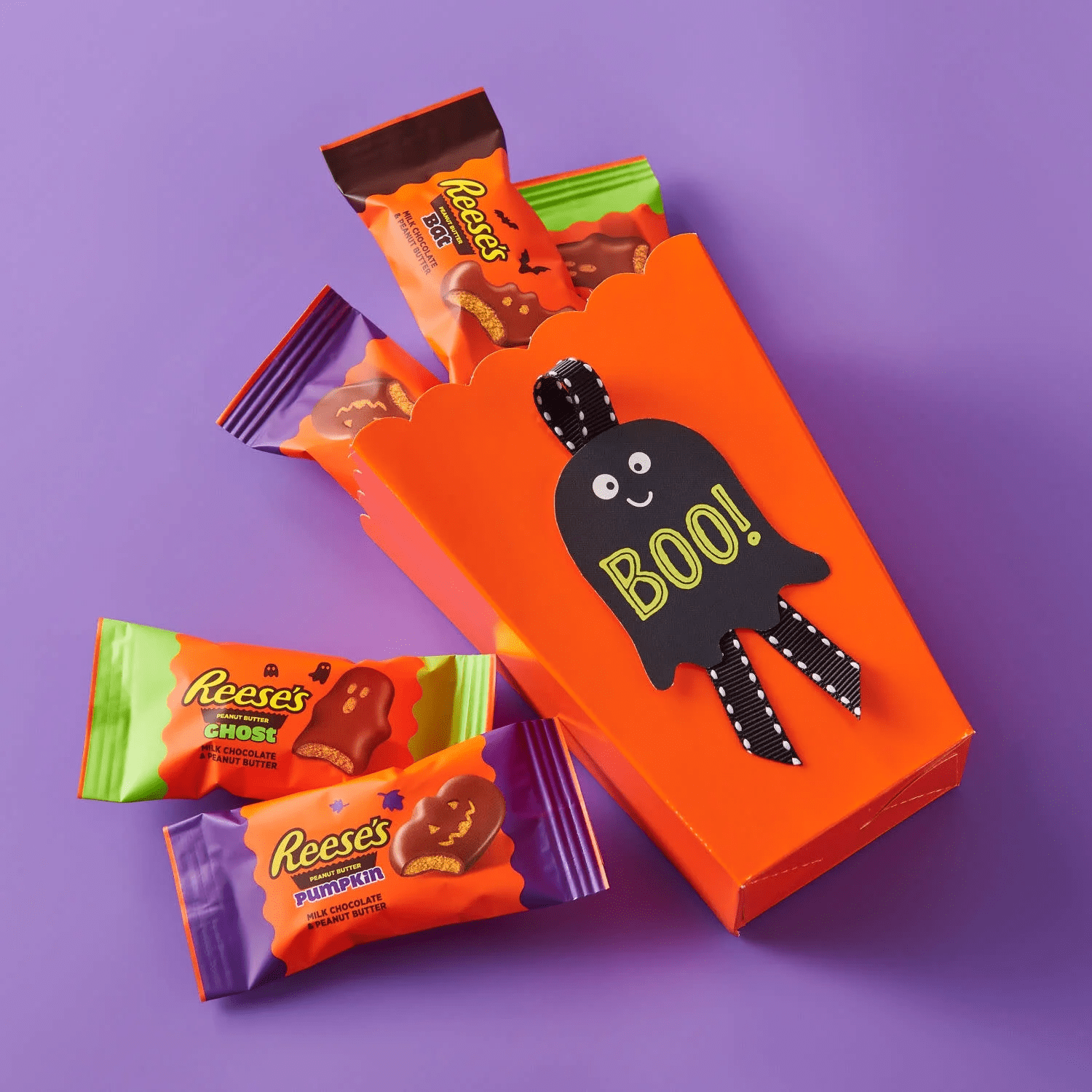 - Put a seasonal twist on your Halloween celebrations with this assortment of peanut butter REESE’S candies shaped like scary ghosts, terrifying pumpkins and eerie bats