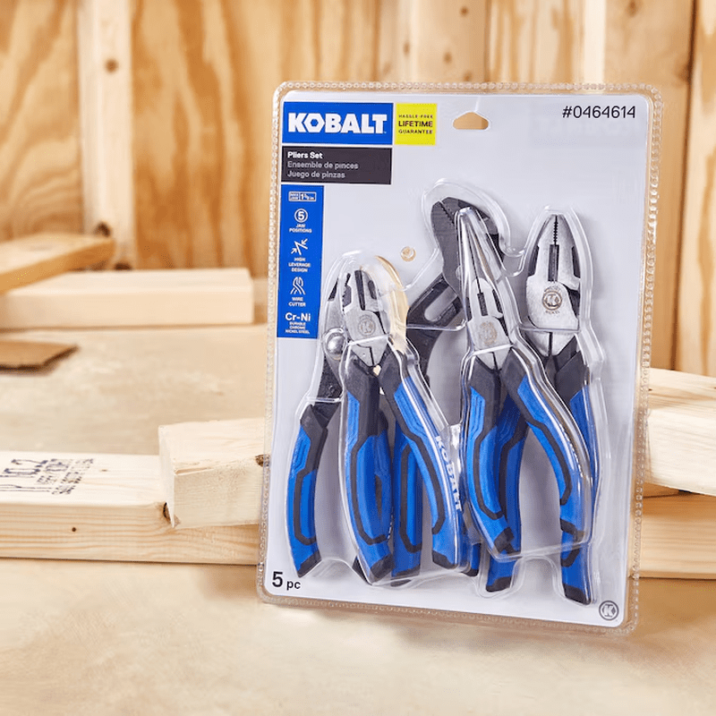 • Includes 6-in long nose pliers,6-in diagonal pliers, 6-in slip joint pliers, 7-in linesman pliers and 8-in groove joint pliers