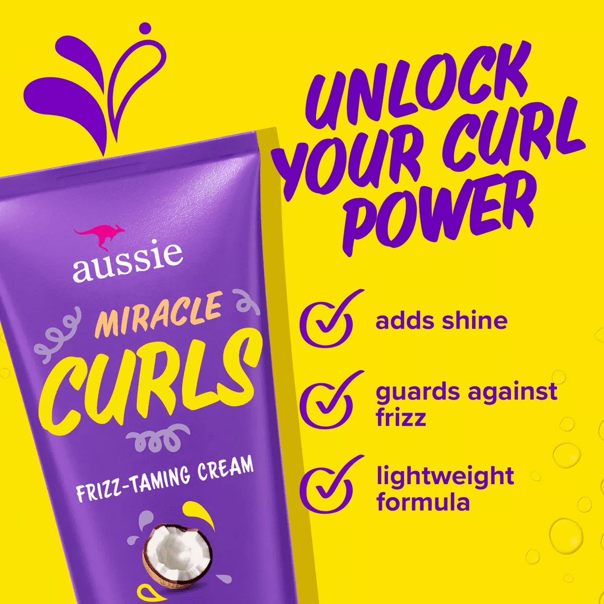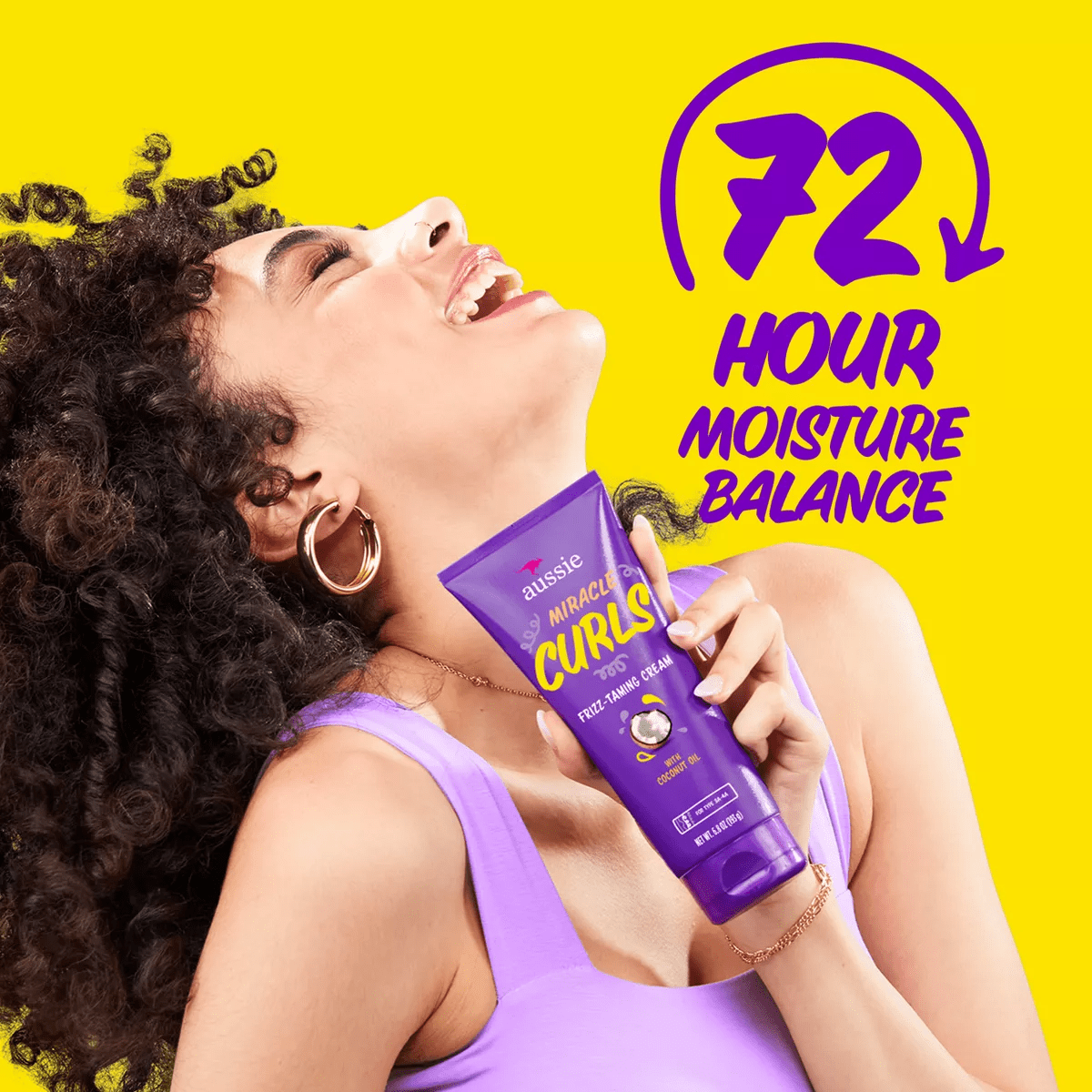 Have your curls and coils begun to look extra frizzy and left you feeling flat lately? Well, it’s time to fight that stubborn frizz with Miracle Curls Frizz-Taming Cream from Aussie! Add shine, reduce frizz, and unlock a smooth, defined look for your gorgeous curls when you apply Miracle Curls Frizz-Taming Cream daily with your regular haircare routine. Simply apply Miracle Curls Frizz-Taming Cream generously to your damp or dry curly locks, using your fingers to work the hair cream from root to tip. As it nourishes your hair with moisture, you’ll bask in the scent of grapefruit, blackberry, and peach wafting from your rejuvenated hair as you style it to your heart’s content. Now, step back and take in the smooth, shiny, glamourous new look of your curly locks. Soft, bouncing and ready to face the day, Miracle Curls Frizz-Taming Cream leaves your hair feeling fresh, you feeling confident, and your look as bold and beautiful as you want to be. Because who runs the world? CURLS! And while Miracle Curls Frizz-Taming Cream may be hard on frizz, it’s not hard on animals. Not only is Aussie a PETA certified cruelty-free brand, but Miracle Curls Frizz Free is free of sulfates too!