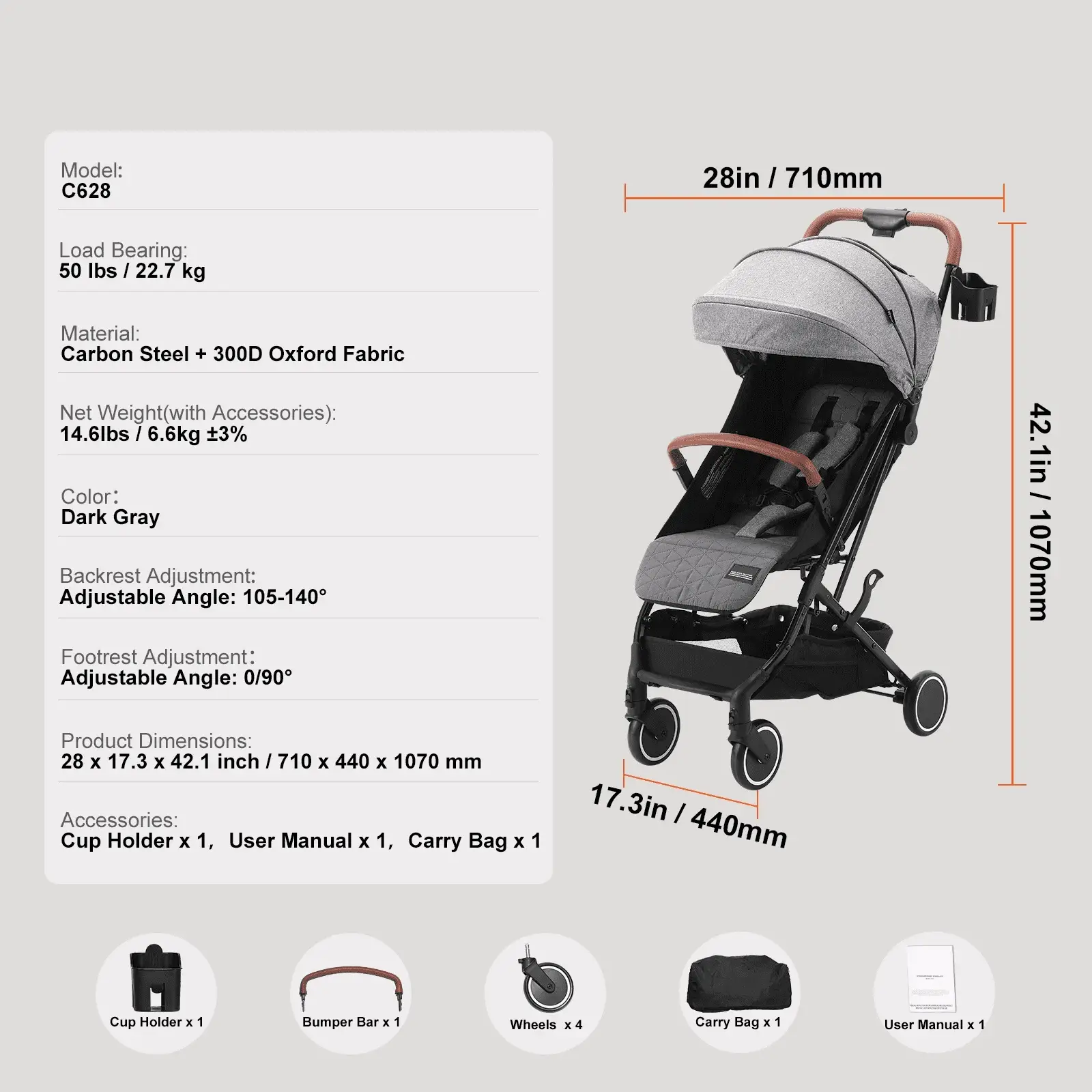 - Convenient for On-the-Move Families: Weighing only 14.6 lbs, this stroller is lightweight and portable. It even comes with a cup holder for added convenience. Its compact design offers maximum storage capability, allowing you to stash everything you need under the seat.
