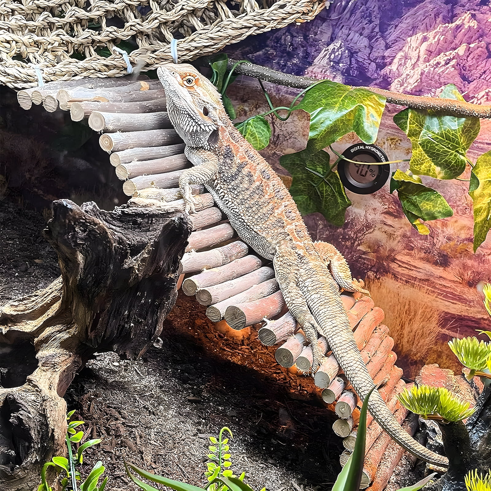 This 10-piece reptile habitat set provides everything needed to create a vibrant, enriching environment for bearded dragons and leopard geckos. It is made from safe, non-toxic materials (plastic plants with washable odor, natural fiber hammocks/bridges), the components allow for creative DIY terrarium setups that offer climbing, hiding spots, and realistic foliage. The bundled solution offers significant value compared to individual purchases and provides durable, functional enrichment for your pet’s habitat.​
