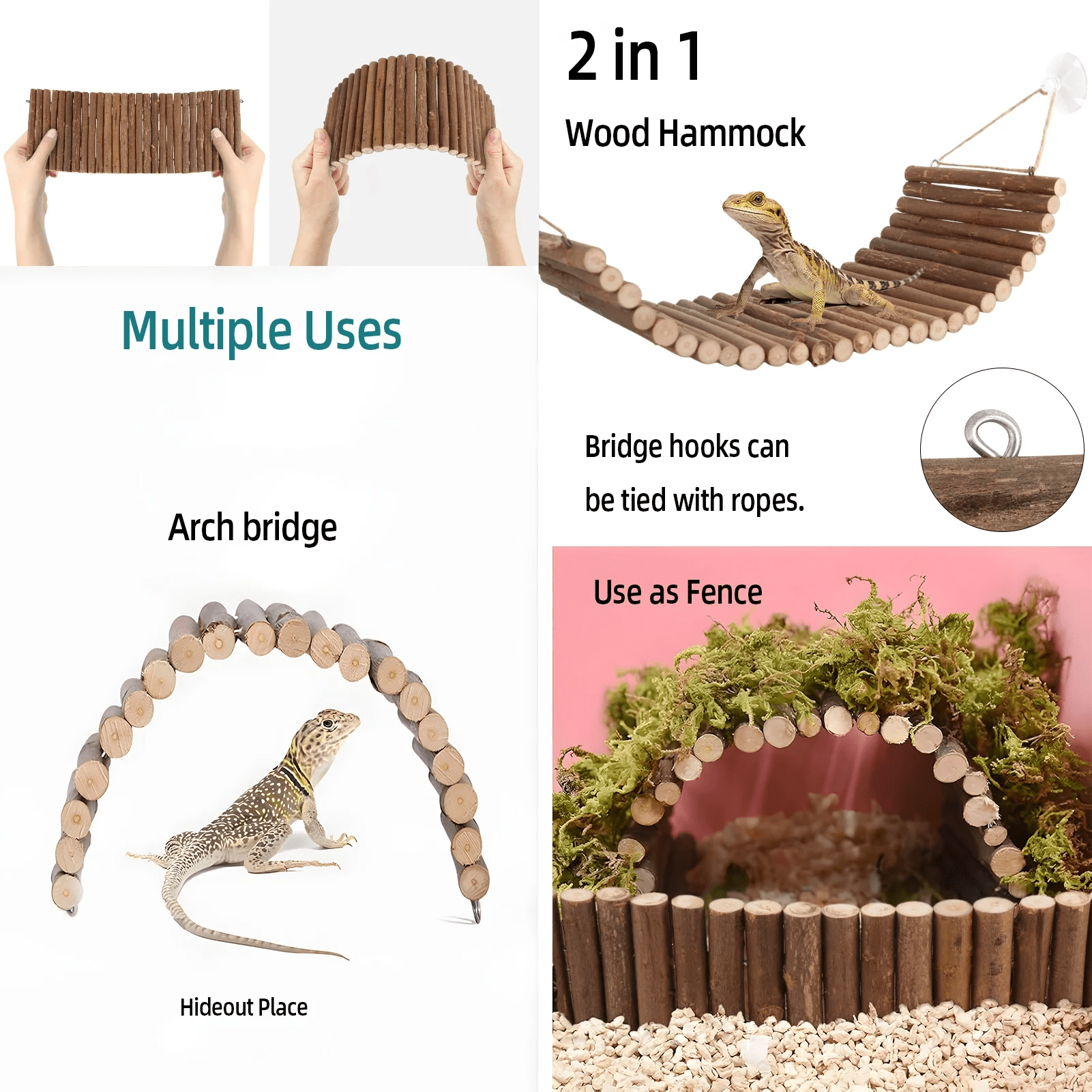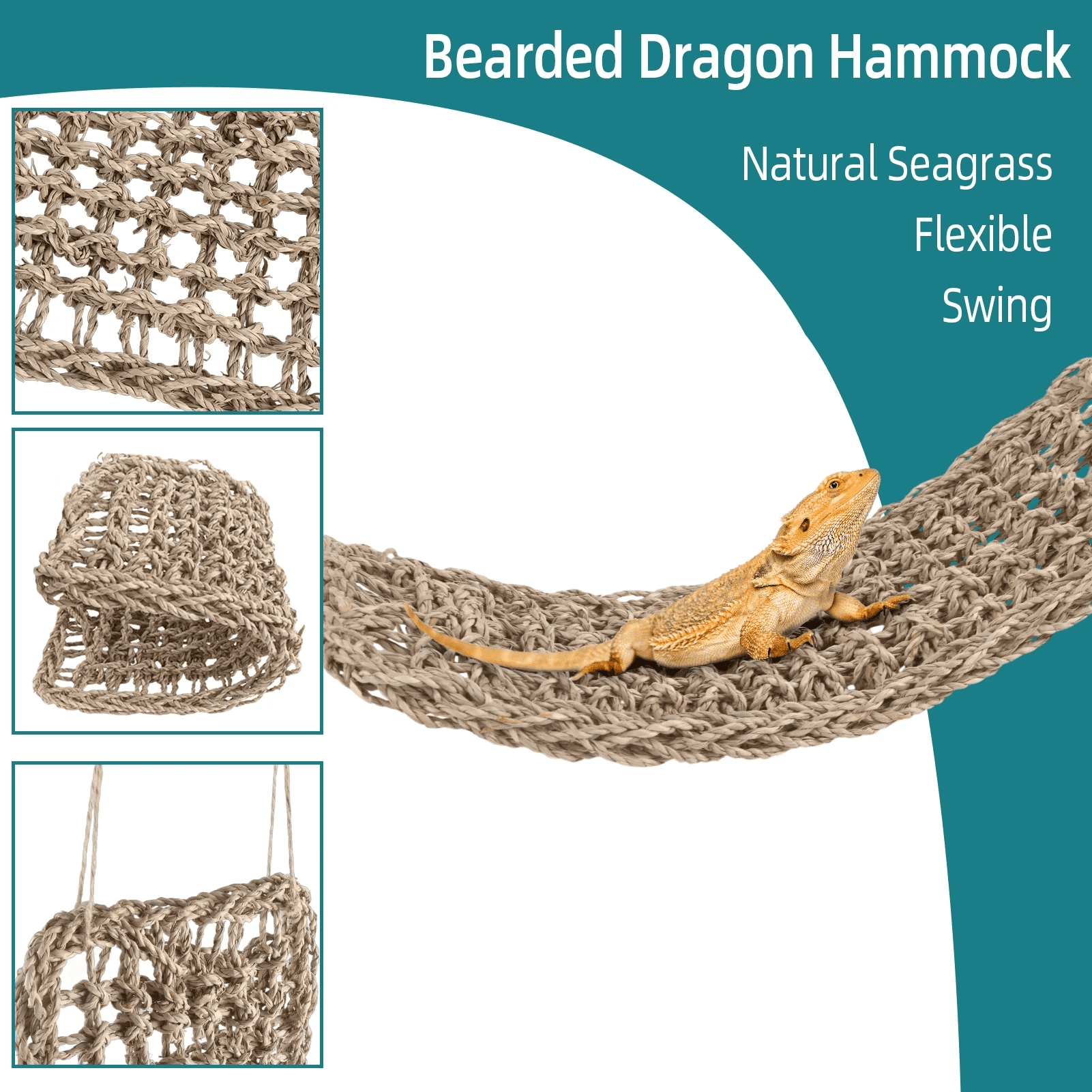 - Abundant Tank Accessories Set: Package comes with 1 reptile mat; 1 Bearded dragon hammock; ,1 Flexible Bendable Bridge; 1 hanging plant; 1 reptile vine; 1 leaves; 4 stand plants. Help you to create a vibrant and colorful habitat for them.