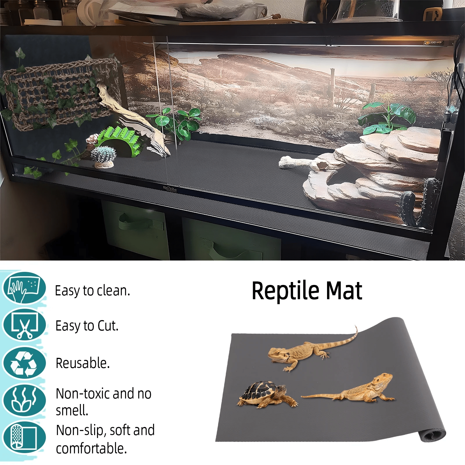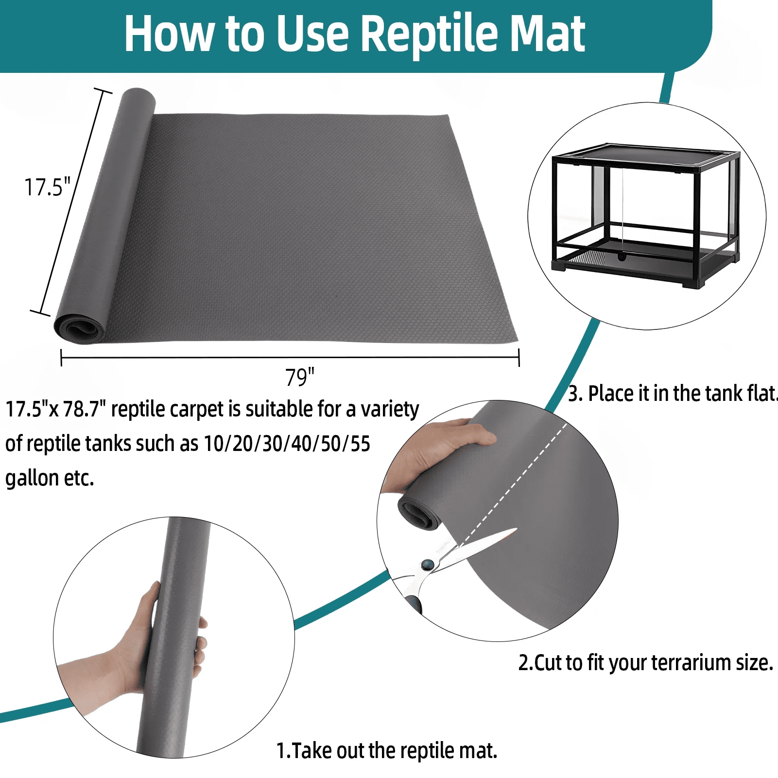 - Perfect Reptile Tank Carpet: The non-stick smooth surface keeps reptile paws from getting stuck, poop can be wiped right off, you don’t need to take it out daily to wash. Reptile Mat can be cut to fit any size or shape of reptile habitat, making it a versatile choice for many pet owners. Perfect bearded dragon and leopard gecko substrate.