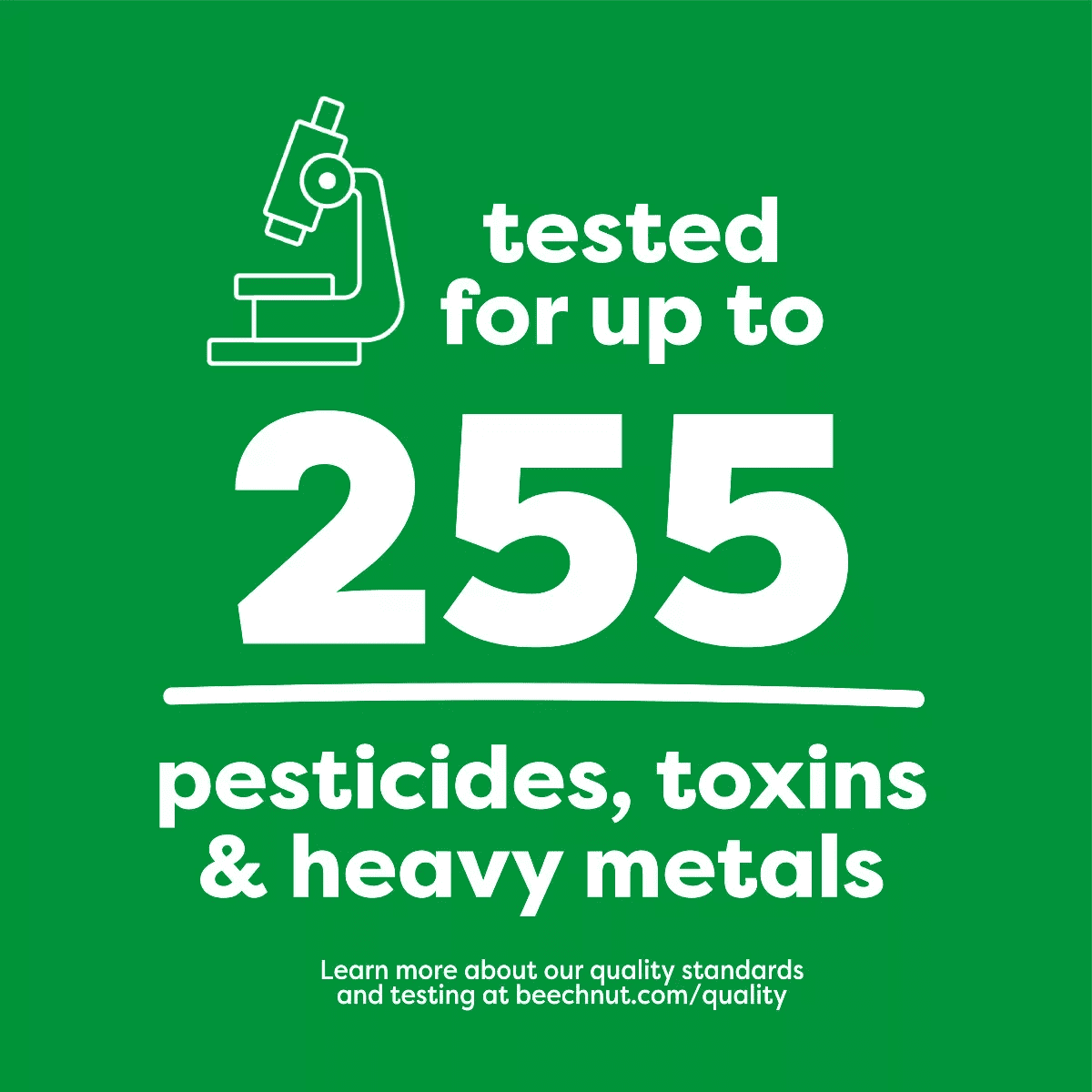 Beech-Nut Baby and Toddler Food Pouches are made with real ingredients and packed in convenient pouches for on-the-go feeding. This variety pack contains (3) carrot, zucchini, pear, (3) zucchini, spinach, banana and (3) squash, peas, pear purees. Our baby food pouches are a delicious way to squeeze more fruits and veggies into your little one’s day. Free of the following allergens: dairy, gluten, peanut, soy, egg. This Stage 2 puree is ideal for your baby 6 months and up.