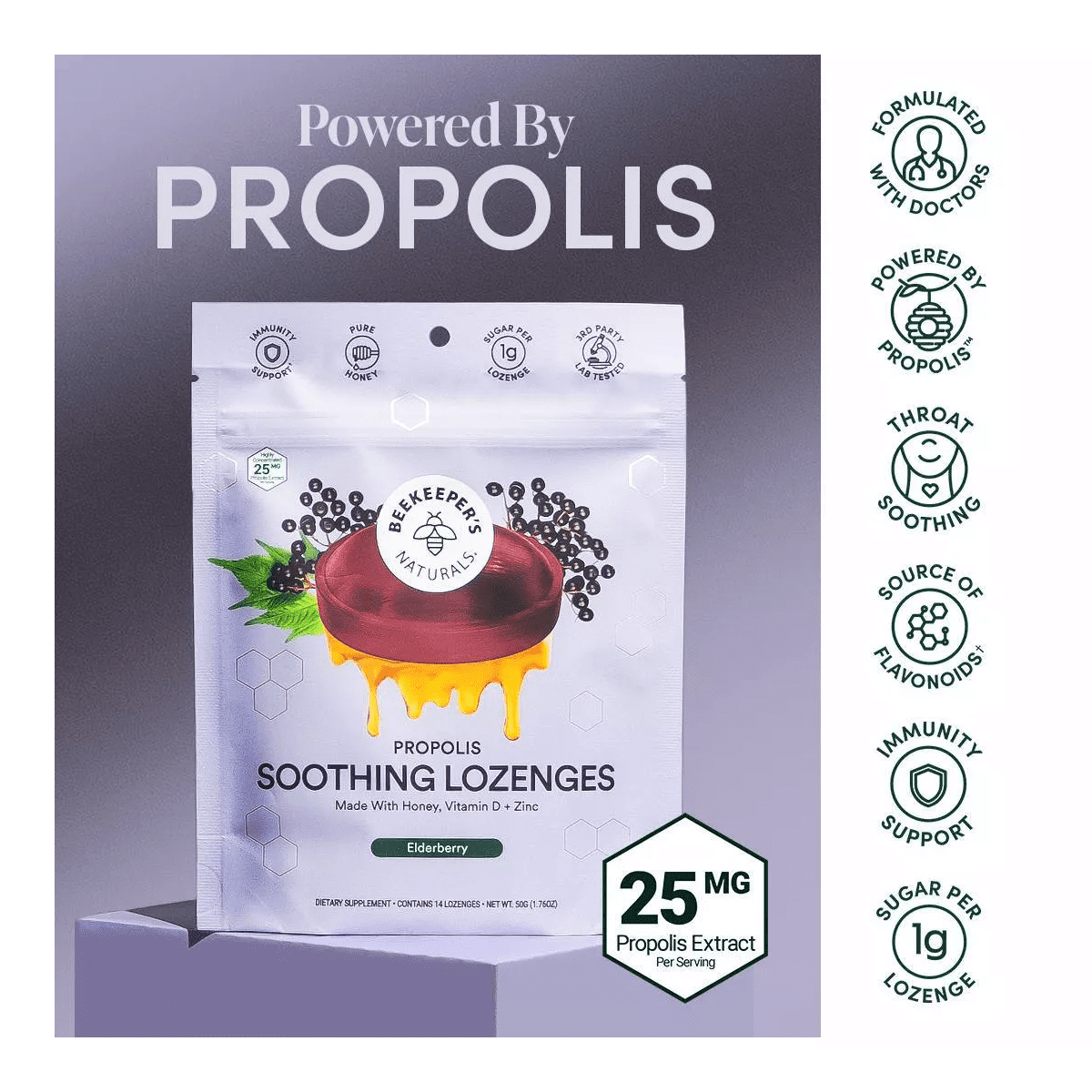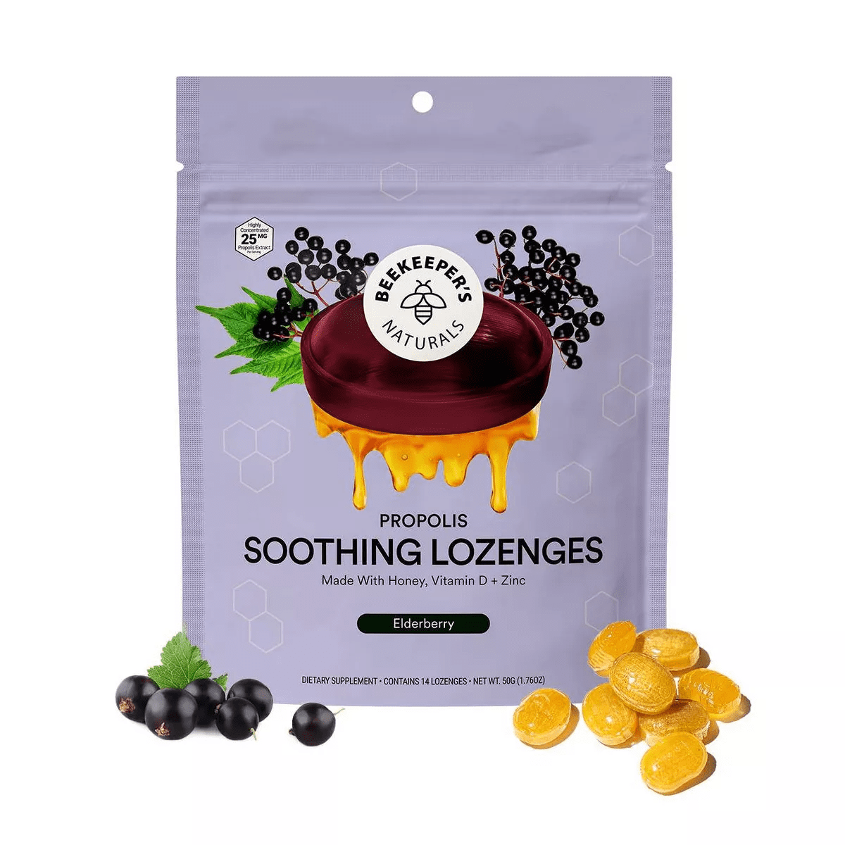 Beekeepers Naturals Propolis Soothing Lozenges – Elderberry – 14Ct