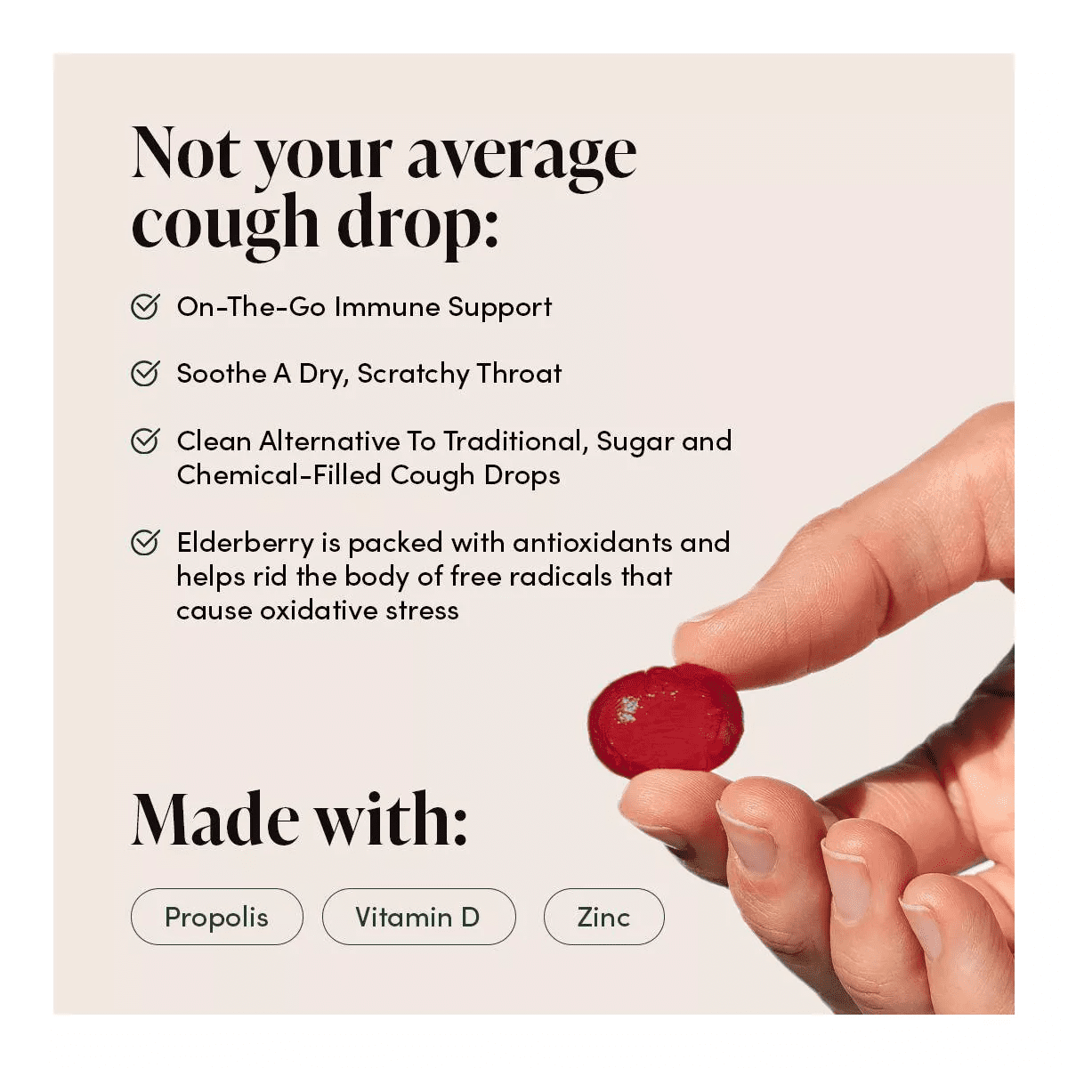 • Extra Immune Support: While most lozenges don’t actively support immune health, ours deliver Zinc, Vitamin D, and Vitamin C (in addition to propolis) which all play vital roles in supporting the immune system on a cellular level.