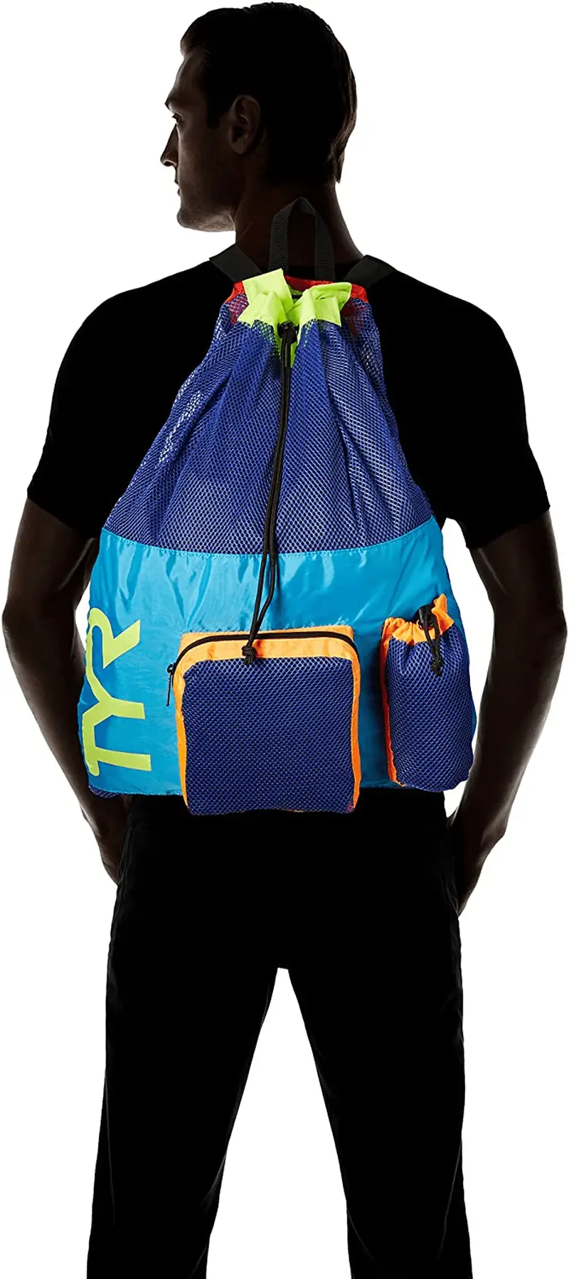 • LARGE CAPACITY: Great for packing swim training equipment, snorkeling gear, beach items, and the pool, the TYR Big Mesh Mummy backpack features an updated design with 20% more capacity for storing all your swimming gear.