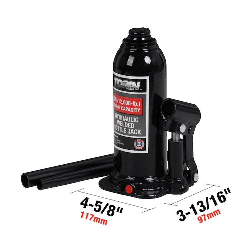 The Torin bottle jack is designed for residential and commercial use. The heavy duty steel construction is perfect for quality and durability. The inner/outer welded structure is leak-free and gives it an overall stronger build. The lifting range is 8-1/8″ – 15-13/16″.