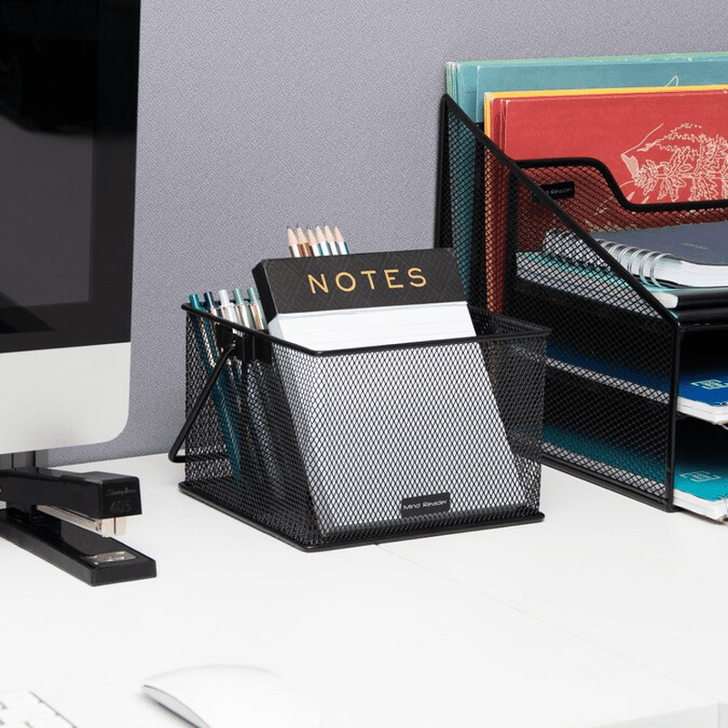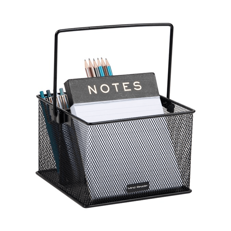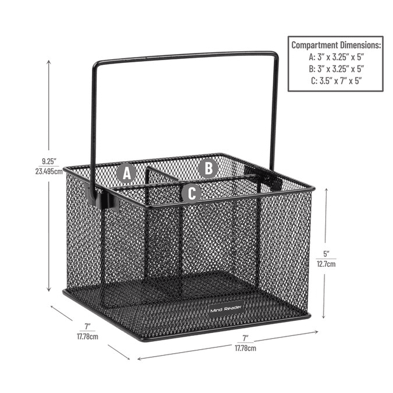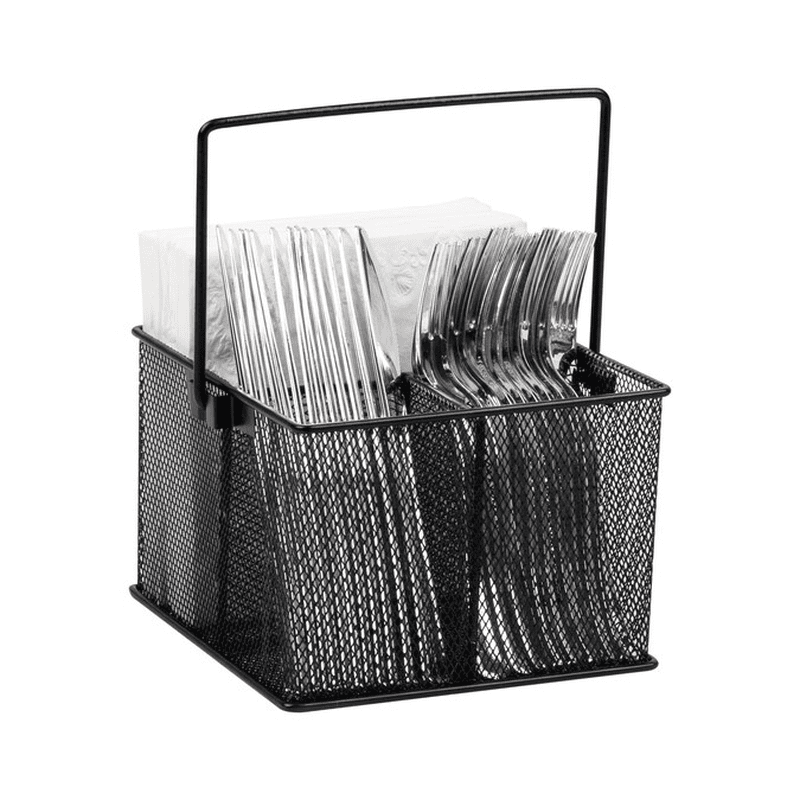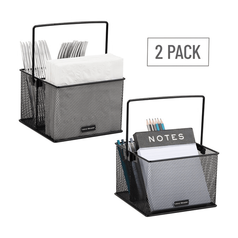 Simplify your organization with this set of two Mind Reader metal mesh utensil holders. Whether you’re planning a backyard picnic, hosting a barbecue, or organizing your kitchen counter, these caddies offer stylish and practical storage for all your essentials. Each caddy features four upright compartments—perfect for sorting utensils, napkins, condiments, or even office and classroom supplies. The elevated design keeps items clean, visible, and easy to grab, making it ideal as an outdoor silverware caddy, napkin and utensil holder, or picnic silverware caddy. Crafted from sturdy black metal mesh, these portable organizers are built for everyday use and easily transportable with a convenient built-in handle. They’re also easy to clean, making them an excellent choice for both indoor and outdoor settings. From summer parties to school classrooms, this versatile set makes a great gift for teachers, campers, or anyone who appreciates tidy, functional storage.