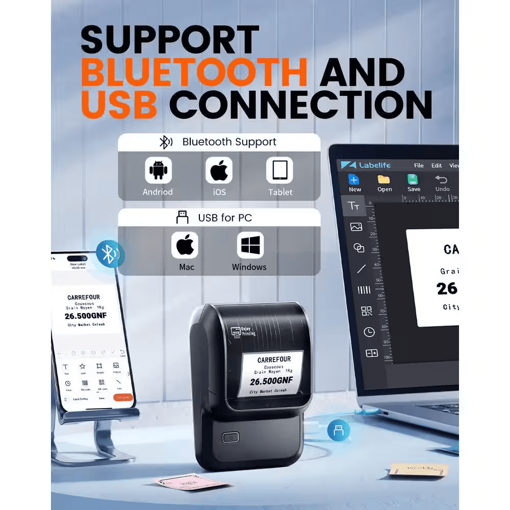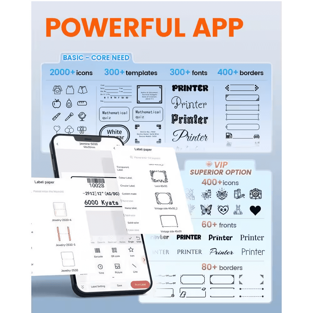 Organize your life and business effortlessly with this versatile label maker, featuring a user-friendly app packed with over 2,000 icons, 300 templates, and 300 fonts for ultimate customization. Enjoy fast, ink-free printing with crisp 203 DPI resolution perfect for address labels, folders, name tags, and more, whether at home, school, or the office. Lightweight and portable, it connects seamlessly to your phone or PC, keeping you ready to print on the go.