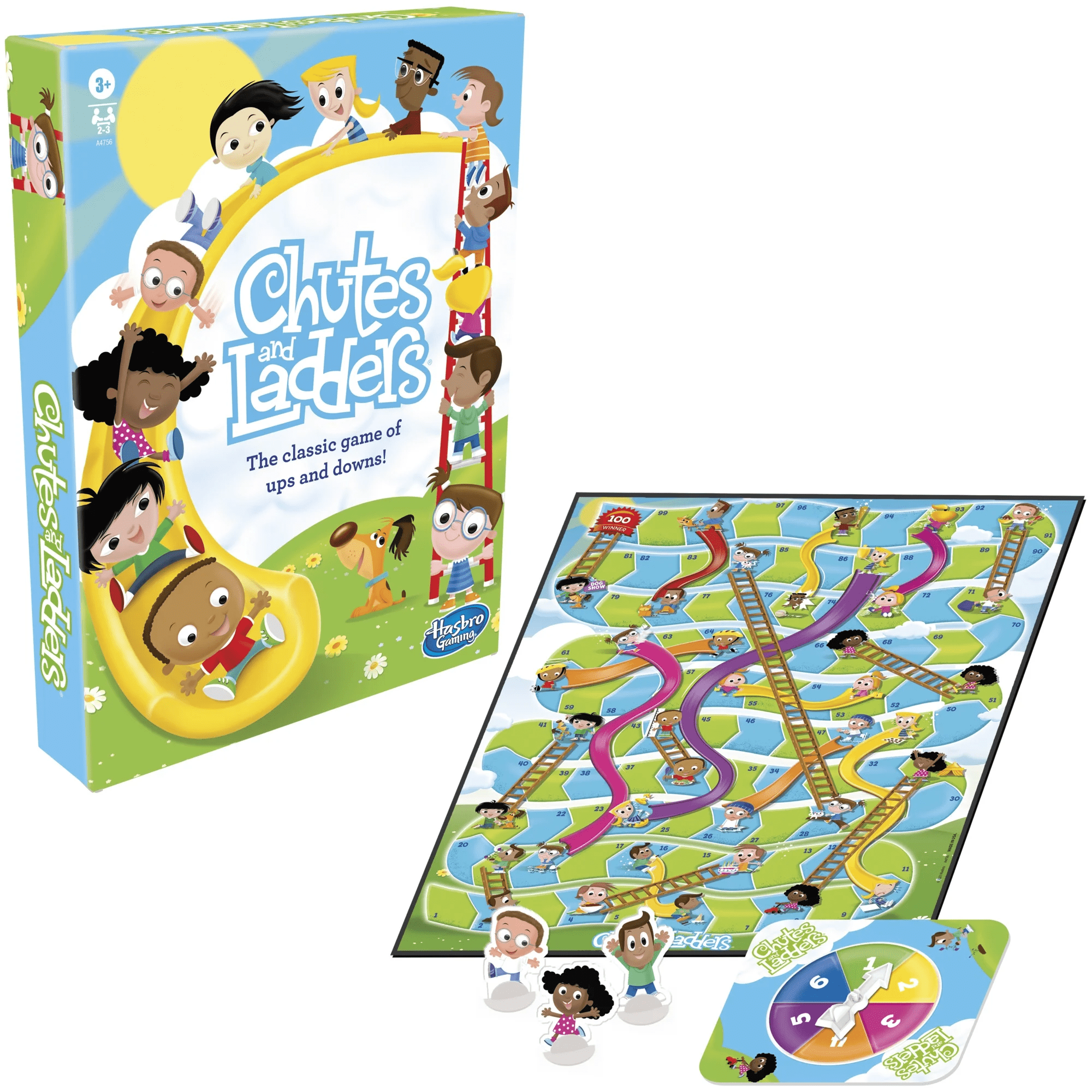 - CLASSIC GAME OF UPS AND DOWNS: Up, up, up…then down, down, down! Climb the ladders but watch out for the chutes! The Chutes and Ladders board game is a fun and easy game for kids ages 3+