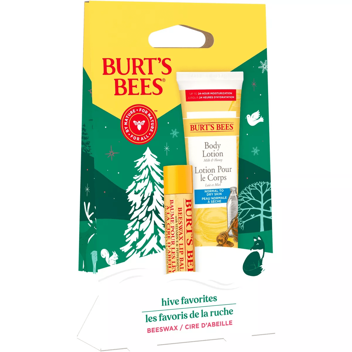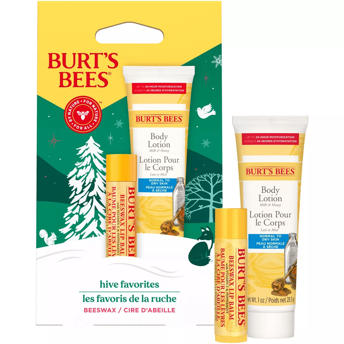 - GREAT GENDER NEUTRAL HOLIDAY GIFT: One pack of Burt’s Bees Hive Favorites is a wonderful present with body lotion and moisturizing lip balm for men and women in a beautifully packaged holiday gift set