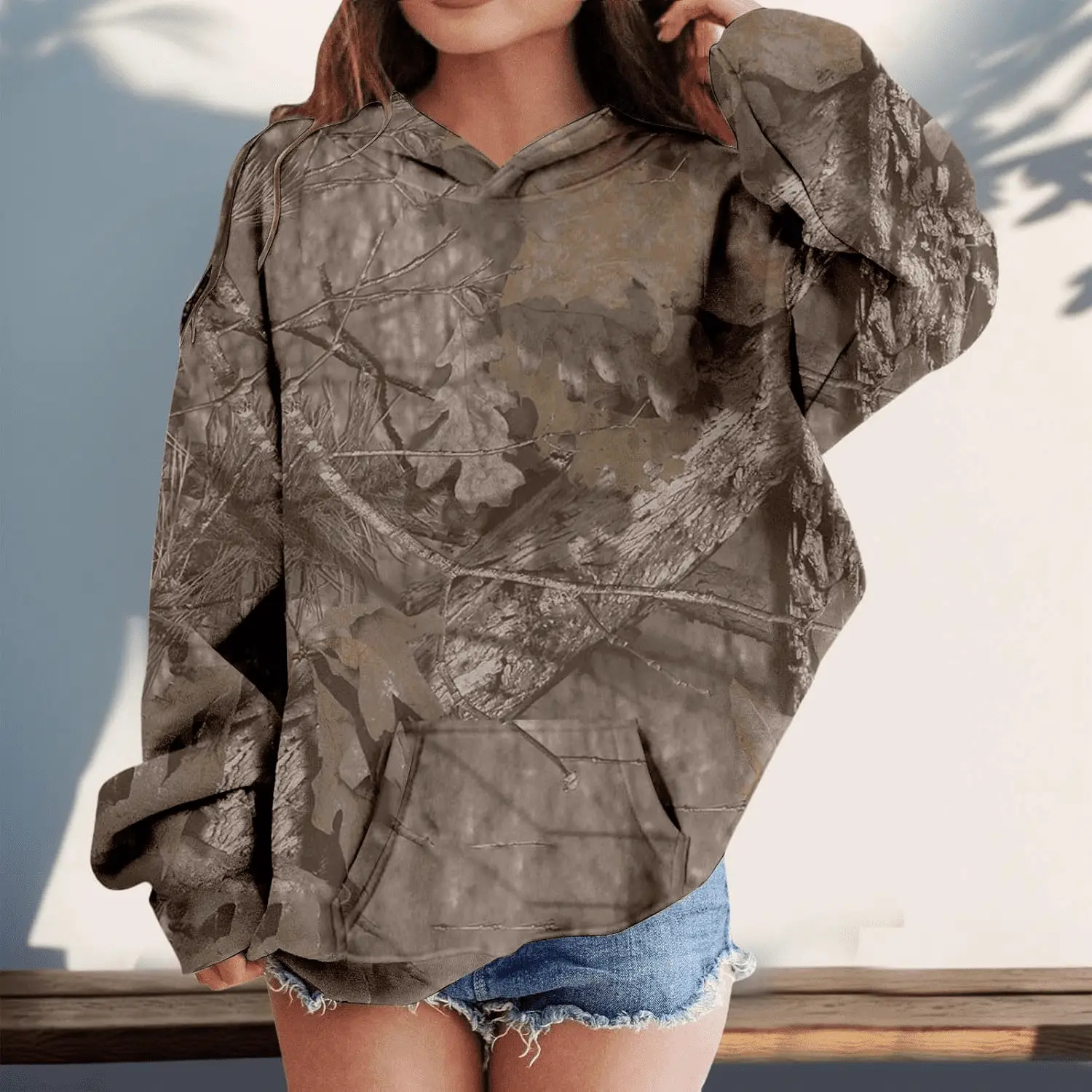 Camo Hoodies for Teen Girls Cute Sweatshirt Maple Leaf Print Oversized Fleece Sweatshirts Pullover Tops with Pocket