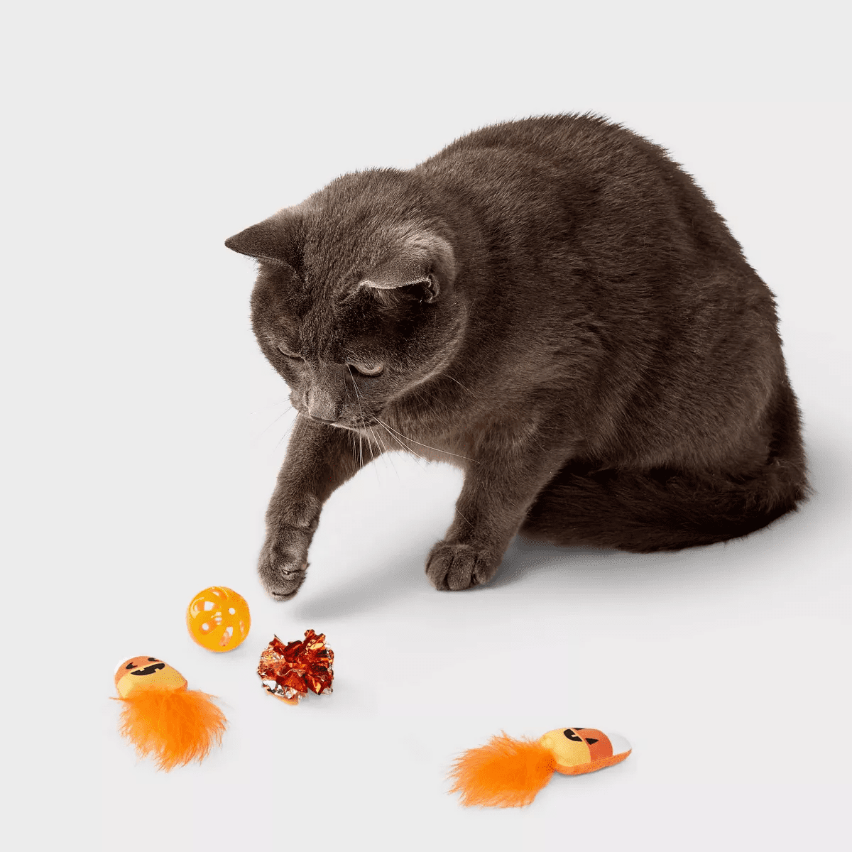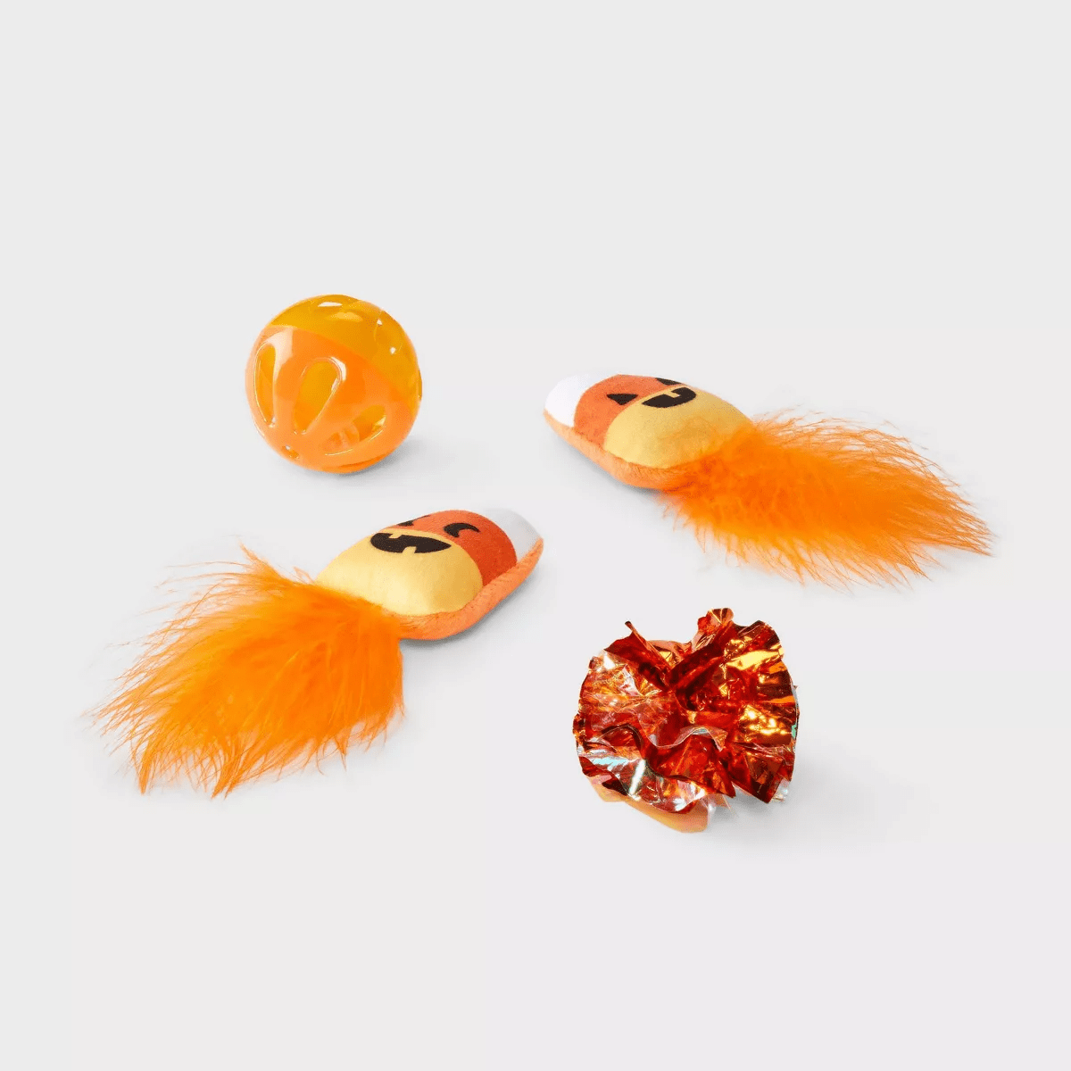 Update your pet’s toy collection with the 4-Pack of Candy Corn Cat Ball Plush Toy Set from Boots & Barkley™. This pack of four cat toys includes balls and candy corn with feathers for a cute and attractive look. Filled with catnip, this plush cat toy set is great for enticing them to chase and pounce.