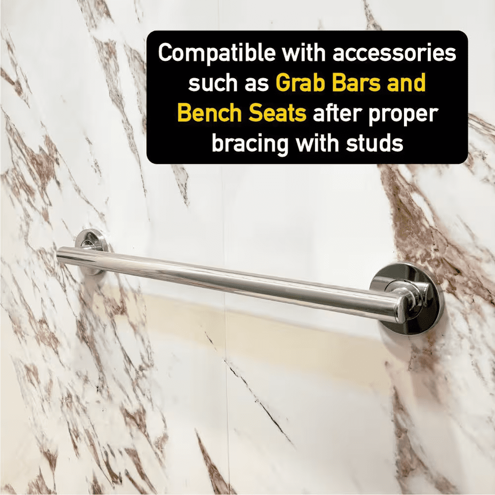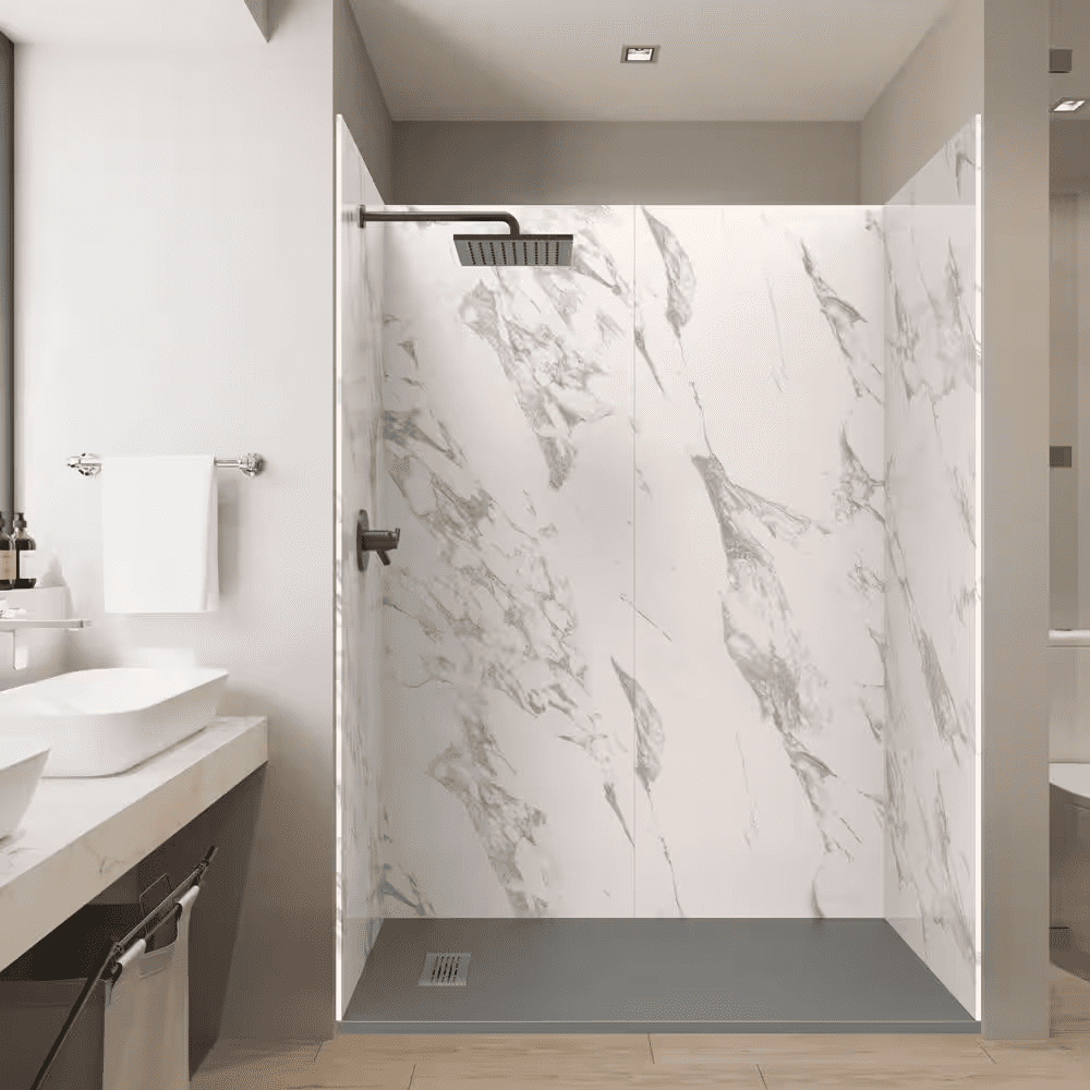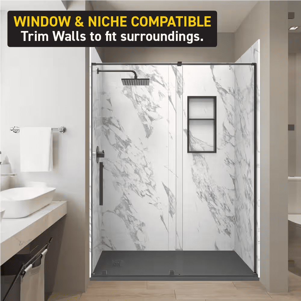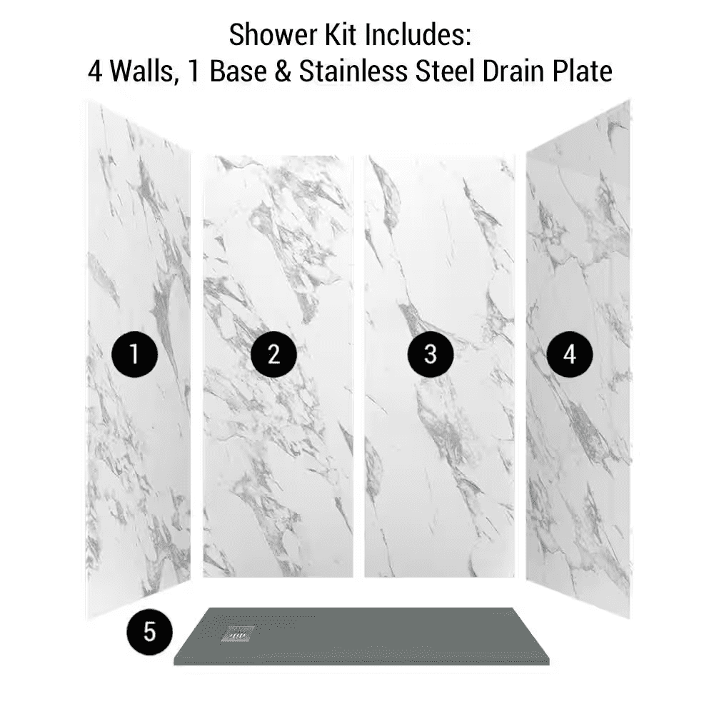 Transform your bathroom with the CASTICO Alcove Shower Kit, expertly crafted from Solid Composite Stone for durability, style, and efficiency. Every CASTICO product is built to last and backed by a limited lifetime warranty for added confidence. This kit features a pre-sloped, slip-resistant solid composite stone shower base paired with beautifully finished, grout-free wall panels that resist stains and scratches. The walls panels are simple to install and can be cut to fit around niches and windows. The curb-less, low-step base and seamless design deliver modern elegance and accessibility, making it an ideal choice for both contractors and DIY enthusiasts