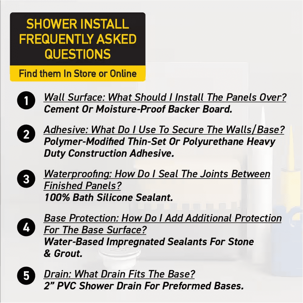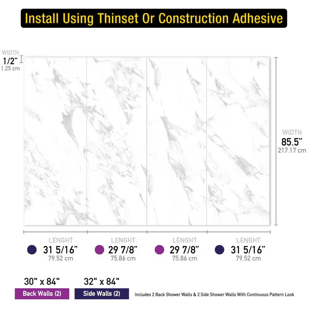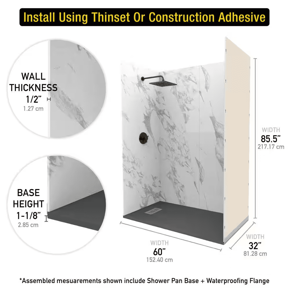 - 32x60x84 Alcove Shower Kit w/ 4 Glue-Up Wall Panels & Shower Base