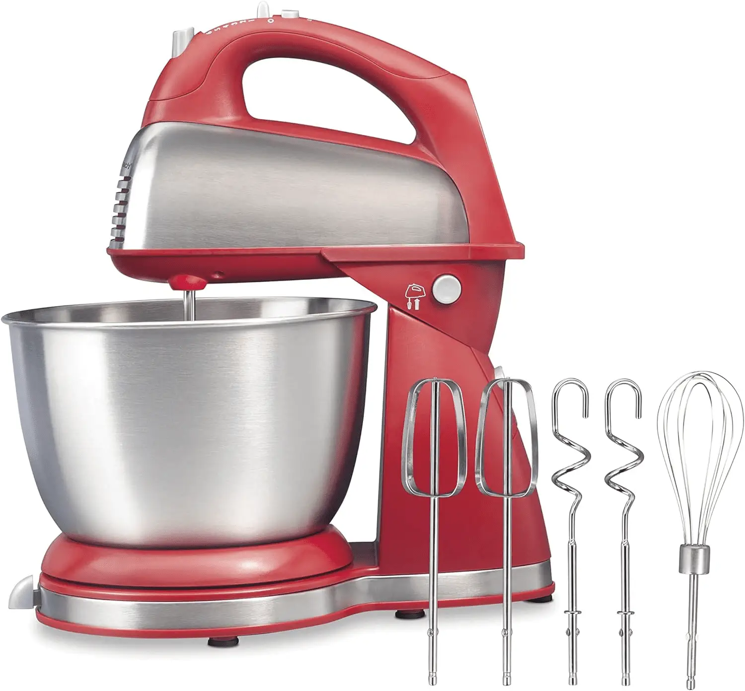 The Hamilton Beach® Classic Stand Mixer easily converts into a hand mixer. It comes with 5 attachments, a 4 qt. stainless steel bowl and 6 speeds. As you mix, the Shift & Stir™ lever lets you move the bowl from side-to-side for thorough mixing.