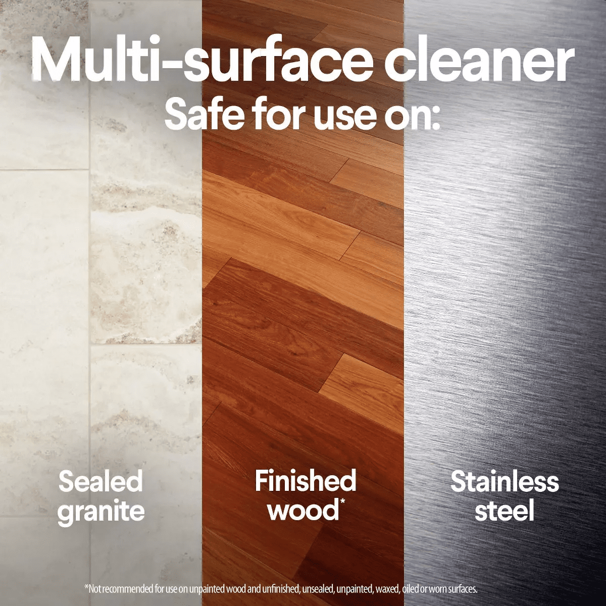 - MULTI SURFACE CLEANER: Wipes are safe for use on hard non-porous surfaces such as finished wood, sealed granite, stainless steel and non food contact surfaces in the home, office, classroom, car interiors and more