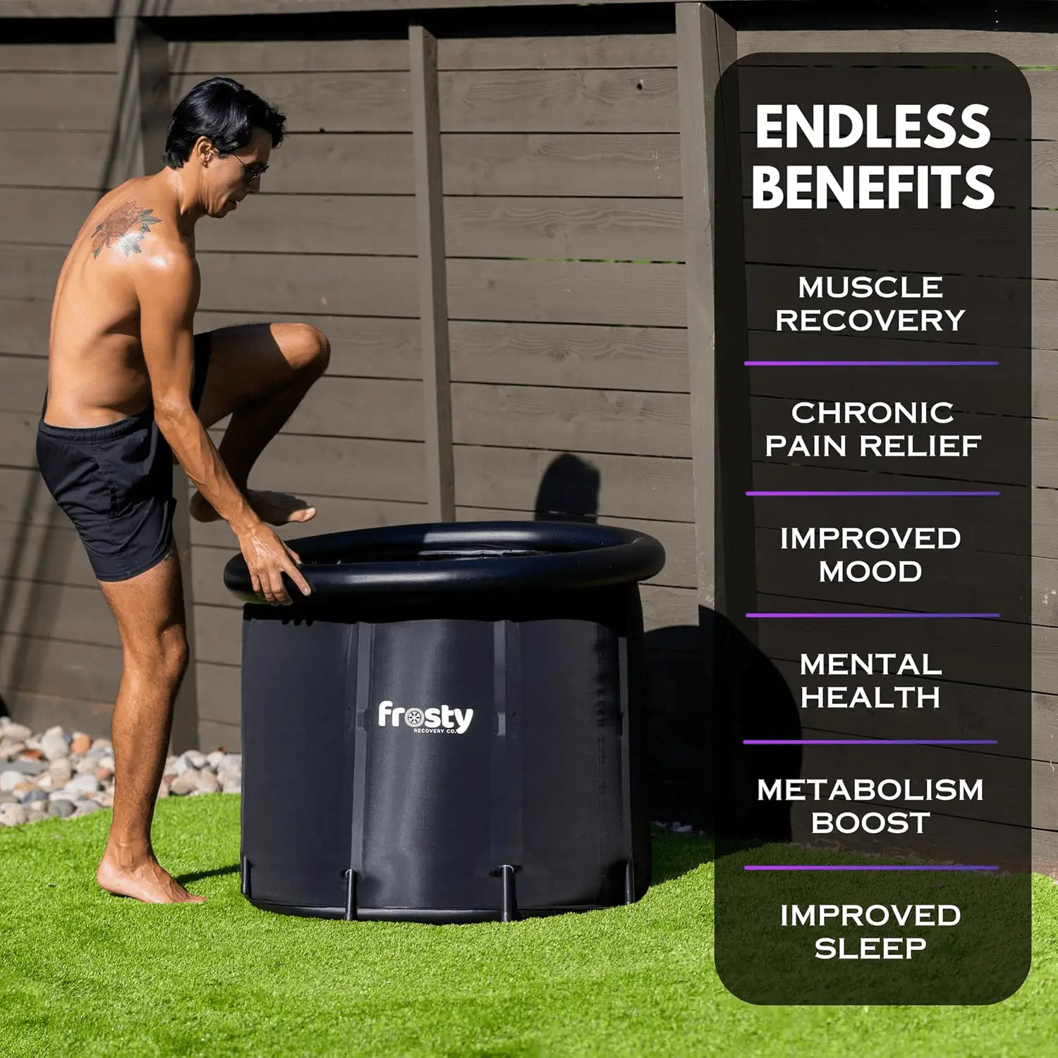 - LET’S GET FROSTY – Made by former college athletes, and life-long cold plunge fanatics, the Frosty ice plunge tub is designed to keep the heat out and keep the cold in. Made with the best and the most insulated cold plunge tub materials and featuring water chiller for cold plunge compatibility, you’re promised to get frosty whenever you want.