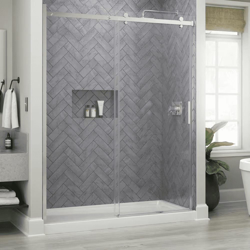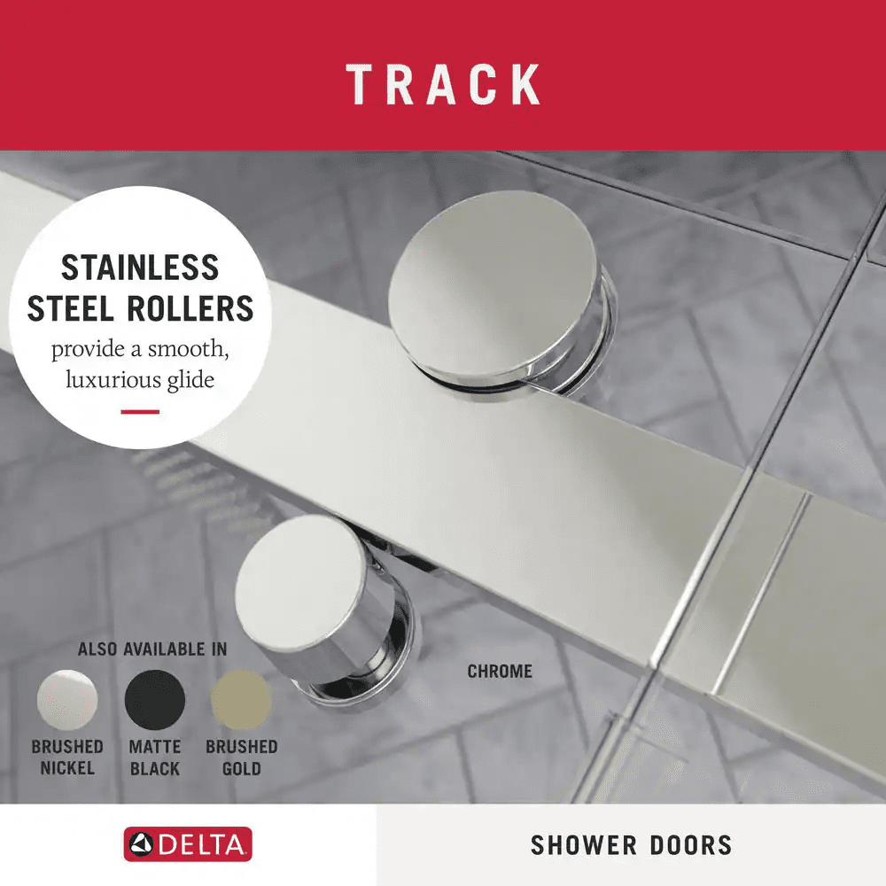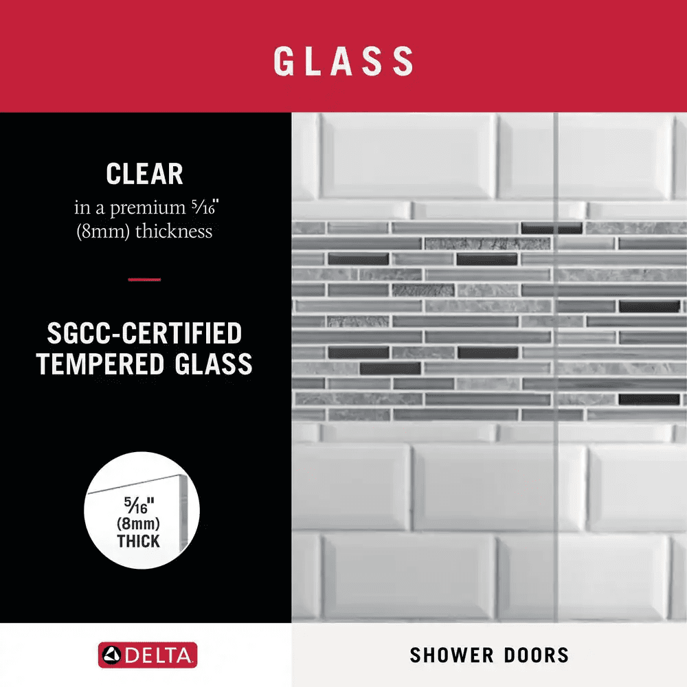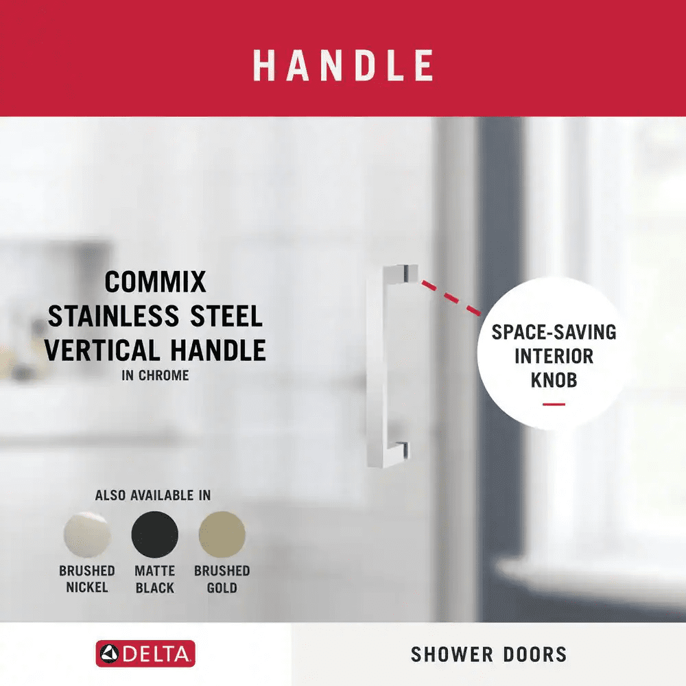 The Delta Commix shower door is a quietly sophisticated design that complements a range of contemporary bathrooms. The warm and welcoming barn door style, along with plenty of transparency, makes this simple combination feel extraordinary. Upgraded 8mm glass panels provide a substantial feel with a comfortable slide. Spot Guard technology keeps your glass sparkling. This proprietary coating resists water spots and other unsightly build-up to make cleaning effortless.