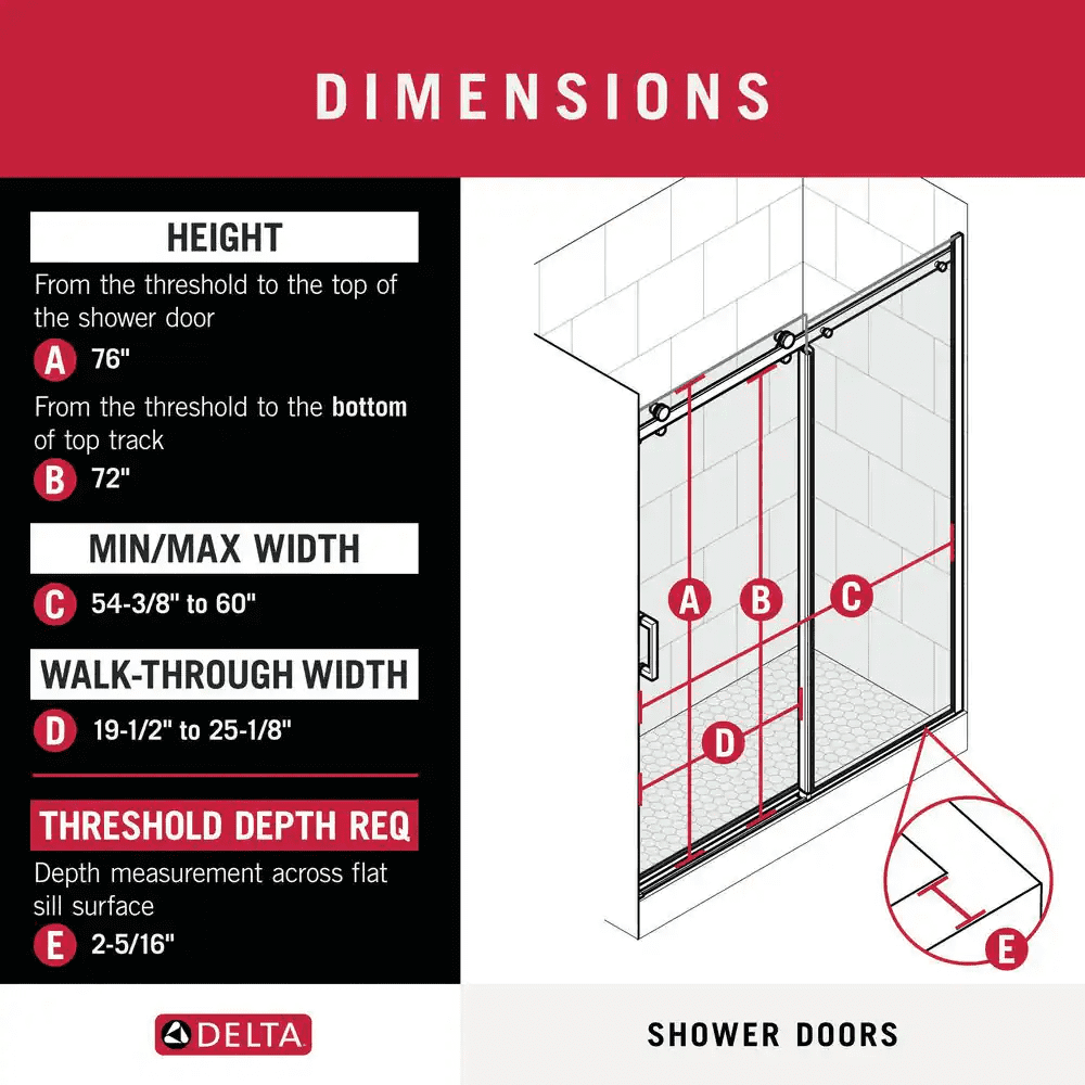 - 1 fixed, 1 sliding door; fits width 54-3/8 to 60 in.