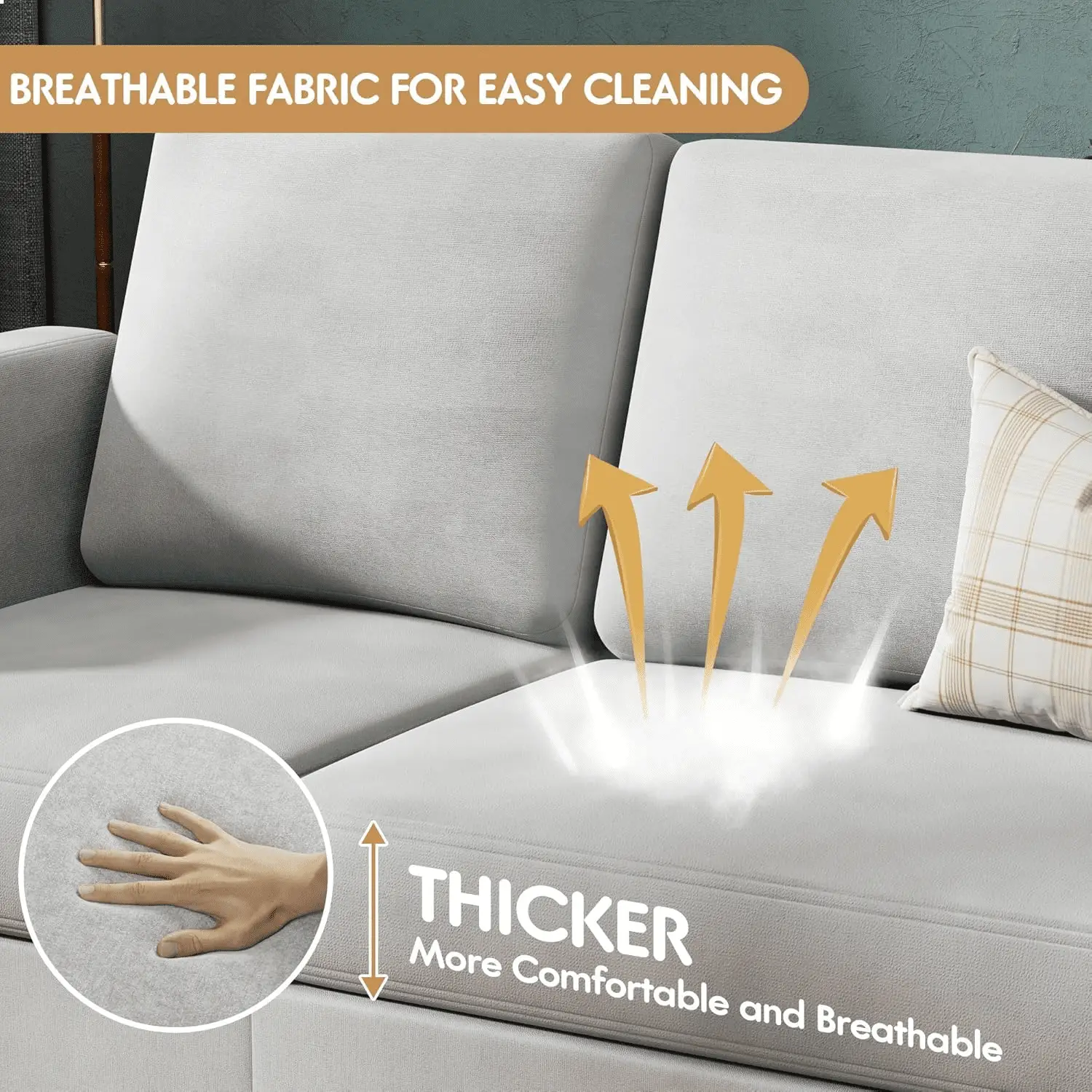 - [Comfortable & Soft Convertible Sectional Sofa] Made of high-density sponge, covered with breathable soft linen fabric, the high-resilience couch will provide you comfortable and soft cloud touch experience. The cushions are vacuum-packed. Thus, in order to get the best experience, please wait 48 hours to let it become the original shape