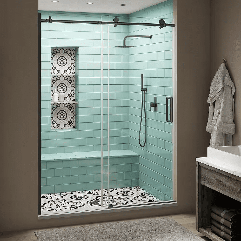Be the first to review “Coraline XL 56 – 60 In. X 80 In. Frameless Sliding Shower Door with Starcast Clear Glass in Matte Black Right Hand”