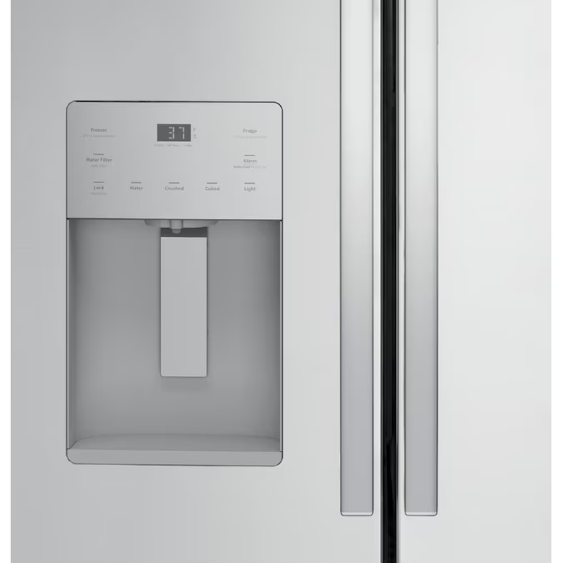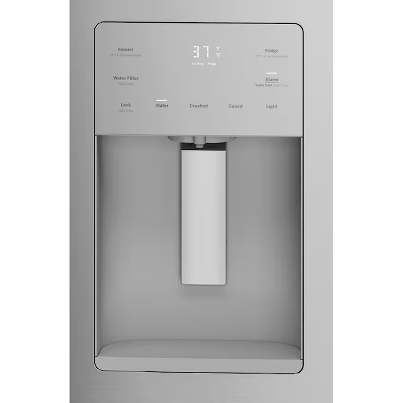 - External controls with actual temperature display, child lock and door alarm – eliminates the guesswork in setting refrigerator temperatures; conveniently displayed on the dispenser