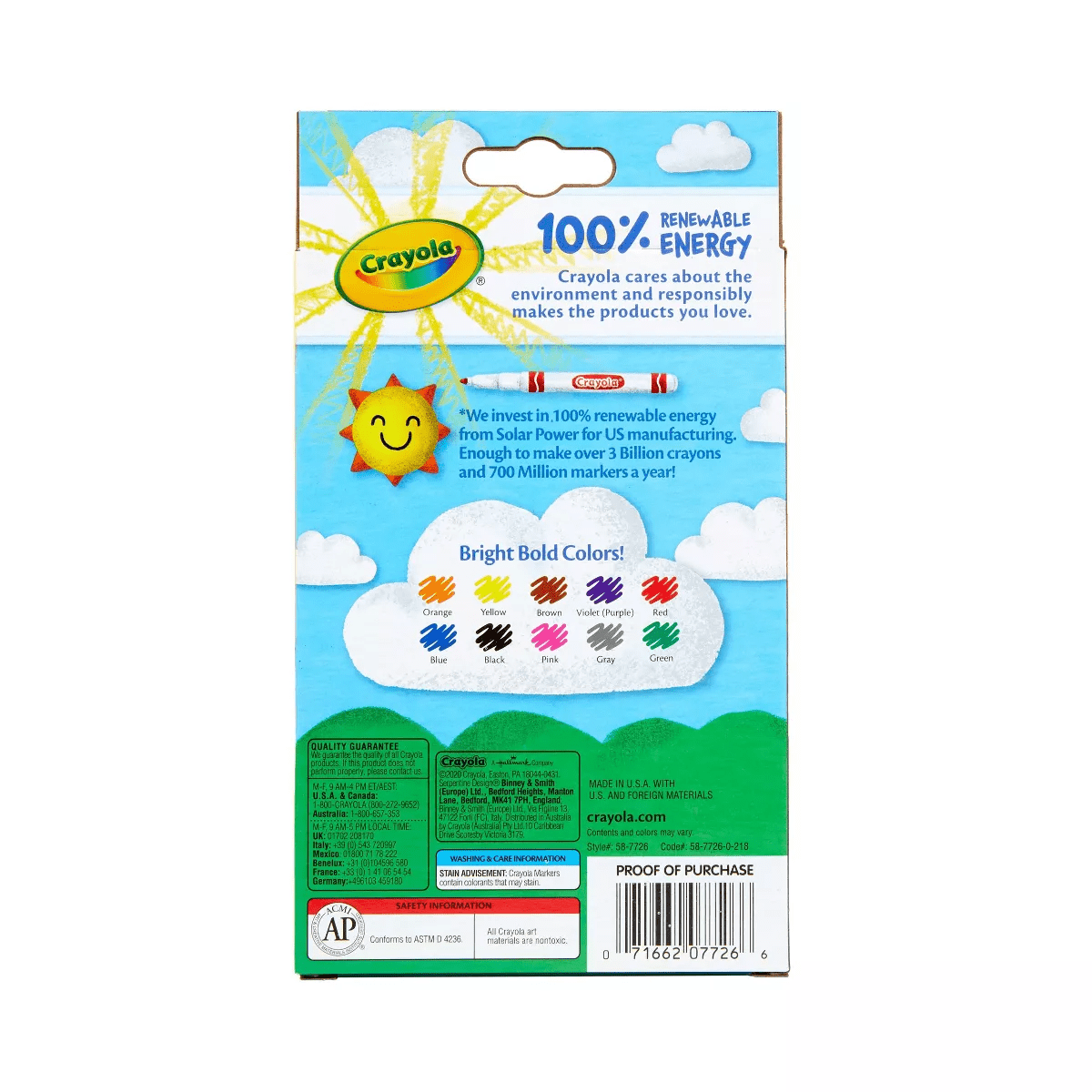 - 10 CLASSIC COLORS: This assortment of markers features 10 classic Crayola colors with high-quality, true-to-color ink. Add bold, vibrant color to artwork, school assignments, and other creative projects. The variety of bright, classic colors in this pack invites imaginative expression.