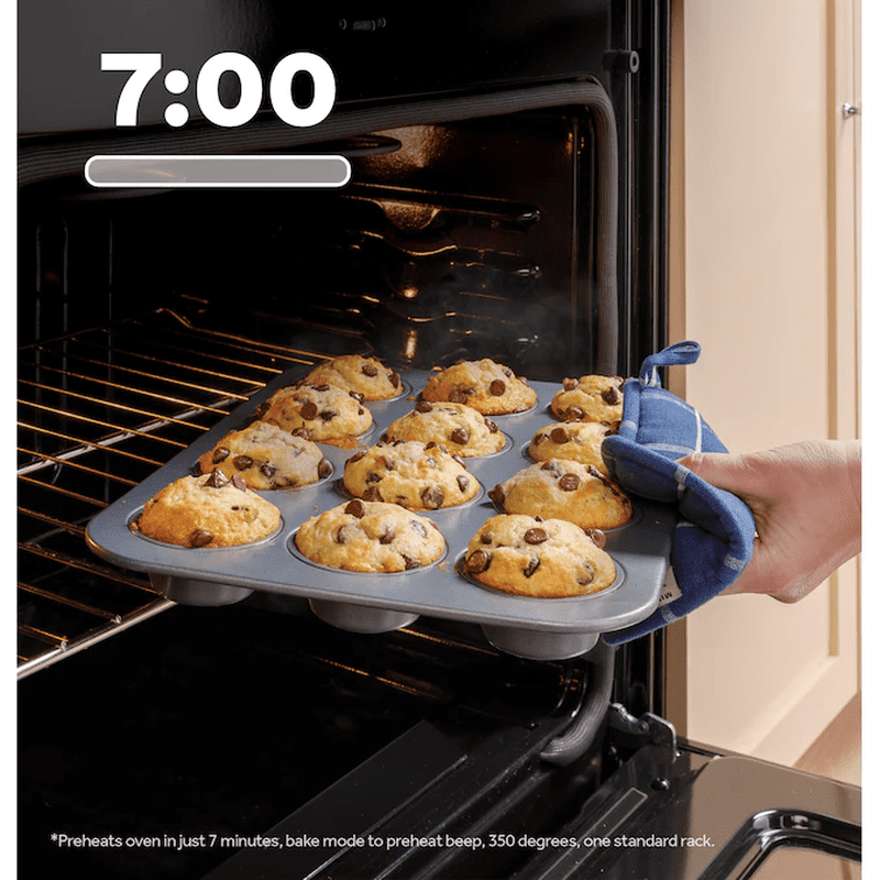 - Express Preheat – get food on the table quicker thanks to a fast preheat oven; in just 7 minutes, you have a perfectly preheated oven; preheats oven in just 7 minutes, bake mode to preheat beep, 350 degrees, one standard rack