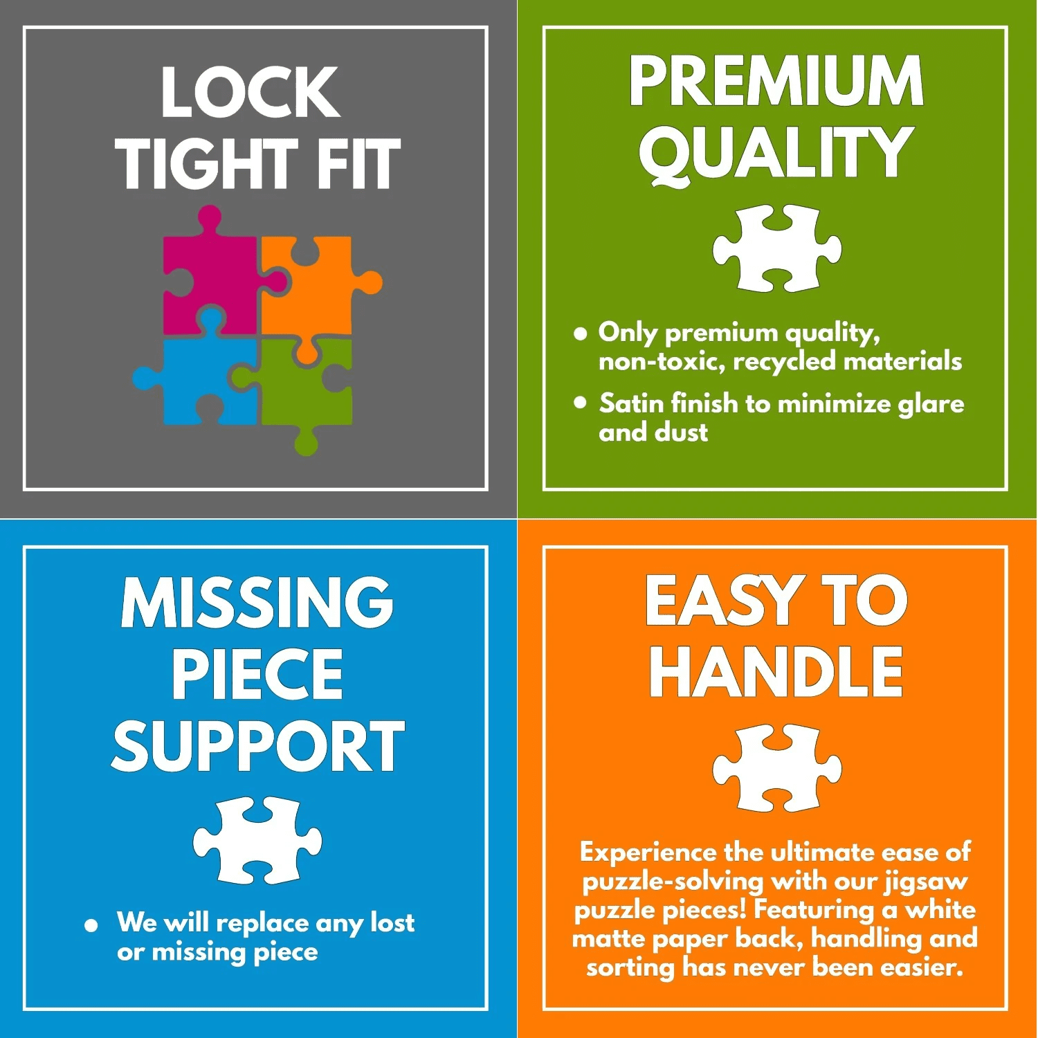- To maintain its brilliance, we’ve printed it with high-quality offset techniques on premium quality, non-toxic, recycled materials, topped with a satin finish to reduce glare and dust. Plus, we’ve packed it in a sophisticated 8″x 8″x 2.5″satin-finished storage box, which not only keeps your puzzle pieces safe but also makes for an exquisite gift.