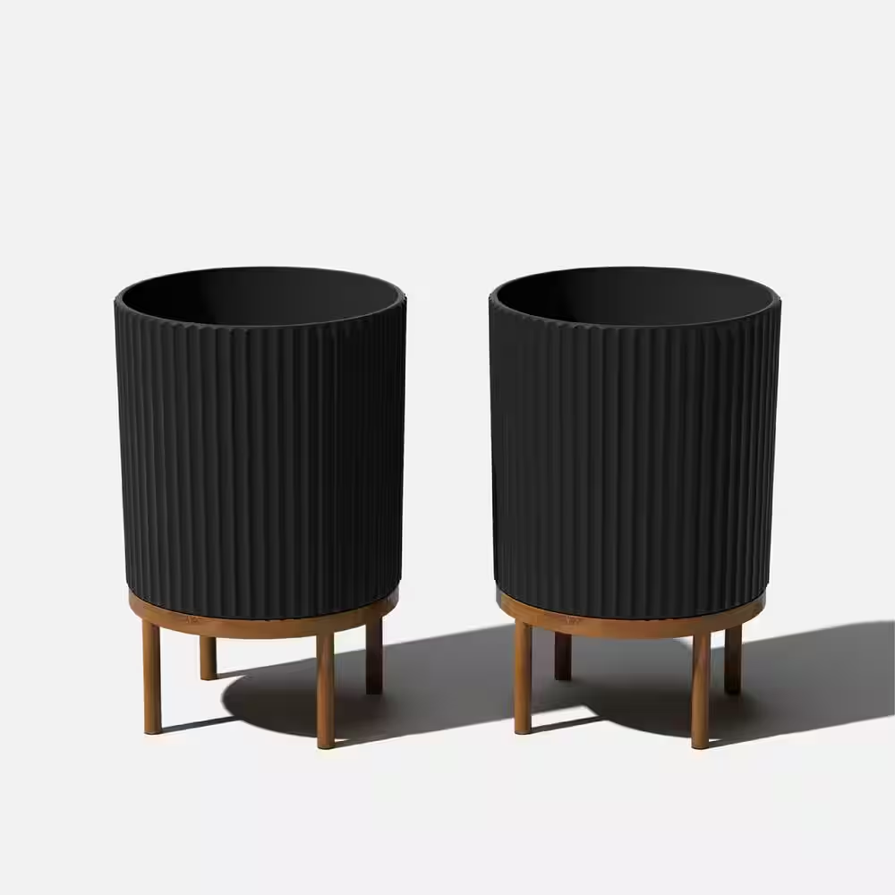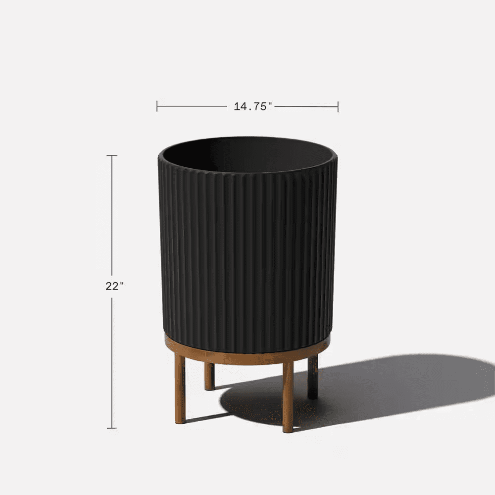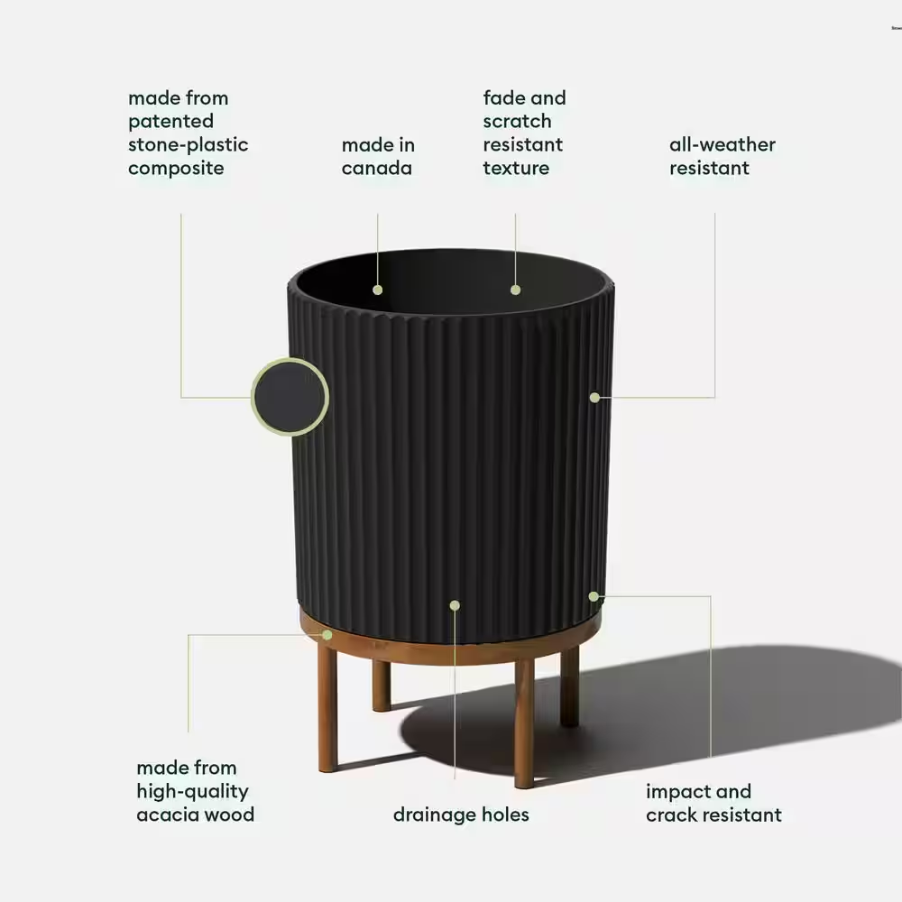 Minimal design and modern appeal. With softened lines in all the right places, the Raised Demi planter is the perfect all-season container for nearly any plant in any space, whether indoors or out. Made from a patented, heavy-duty concrete-plastic composite and elevated by a high quality, all season Acacia wood stand, Demi planters boast the look of concrete, while still maintaining the durable, impact resistant performance of plastic. Designed and made in Canada, all Demi planters are flexible, crack resistant and are specially treated with UV inhibitors to prevent fading. In addition, Demi planters are maintenance free, so you can set it, forget it, and get back to sipping on a glass of lemonade while you work on that tan!