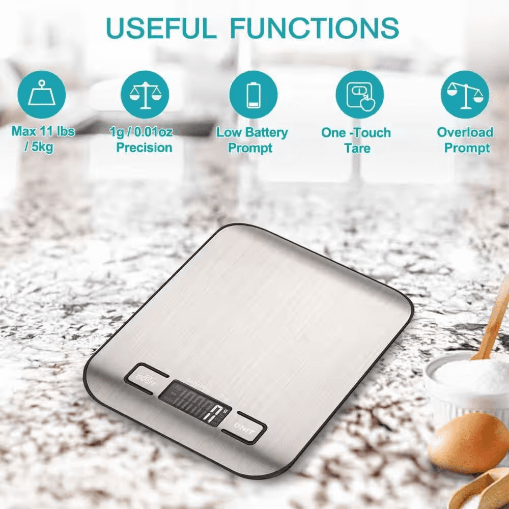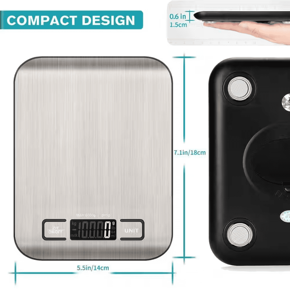 Upgrade your kitchen with this high-precision digital food scale, designed to provide accurate weight measurements for baking, cooking, portion control, and meal prep. With a sleek, modern design, this scale offers 6 unit conversions, making it easy to switch between grams, oz. lbs. milliliters, kilograms, and fluid oz. The tare function ensures precise measurements by subtracting the weight of bowls or containers, while the large backlit display allows for effortless reading. Whether you’re following a strict diet, preparing recipes, or weighing ingredients for baking, this versatile kitchen scale makes cooking easier and more efficient.