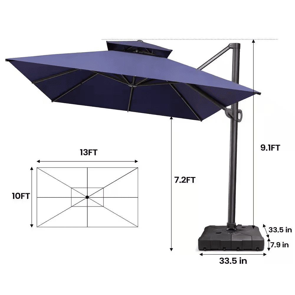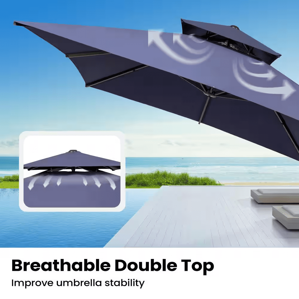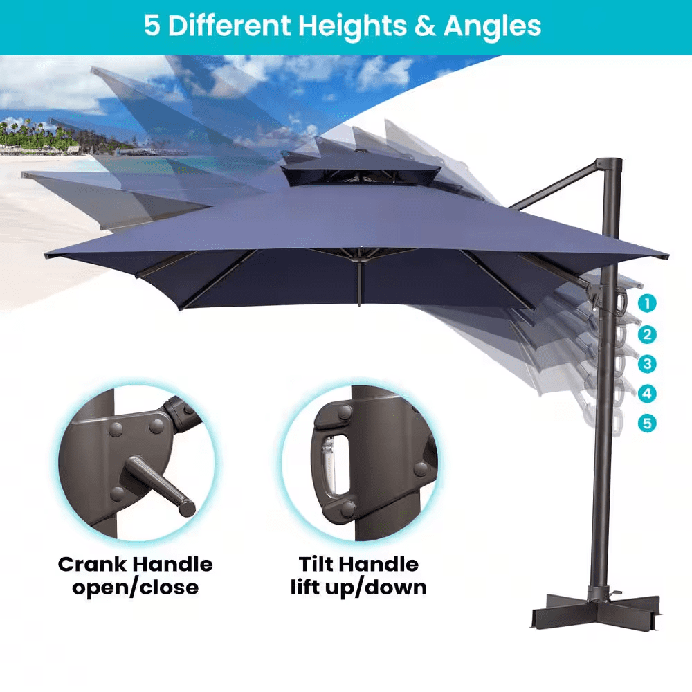 Pellebant is dedicated to offering premium outdoor living solutions for American families. Elevate your outdoor experience with the Pellebant Patio Cantilever Umbrella with Umbrella Base, designed to let you enjoy outdoor activities worry-free. Its easy tilt operation, hand crank lift and 360-degrees swivel ensure convenient adjustments of sunshade area. Prioritize your well-being with this umbrella’s waterproof and UV protection features, safeguarding your eyes and skin during outdoor living.
