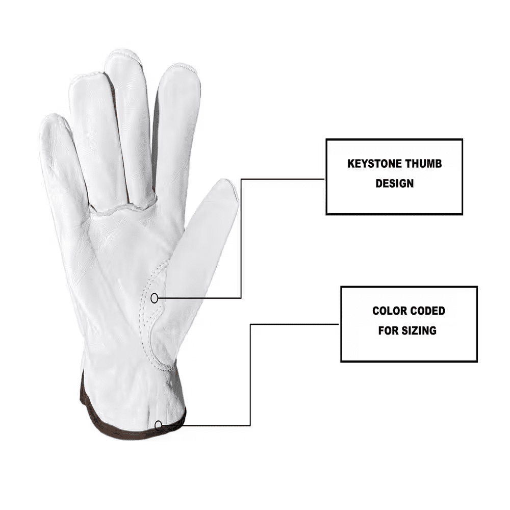 Built from premium, supple goat-grain leather, these Strongarm American Welding Co. Driver Gloves deliver a soft, broken-in feel from day one and mold to your hands over time. Goat leather offers an excellent strength-to-weight ratio and fine dexterity, making these a dependable choice for welding support work, construction, trucking, warehouse tasks, landscaping, and general mechanics. An easy-off wrist helps you slip the gloves on and off quickly, while the keystone thumb adds comfort and freedom of movement for gripping tools, steering wheels, or material handling. Naturally pliable yet durable, the leather stands up to daily use without feeling bulky, so you get confident control and long-lasting comfort on the job or in the garage.