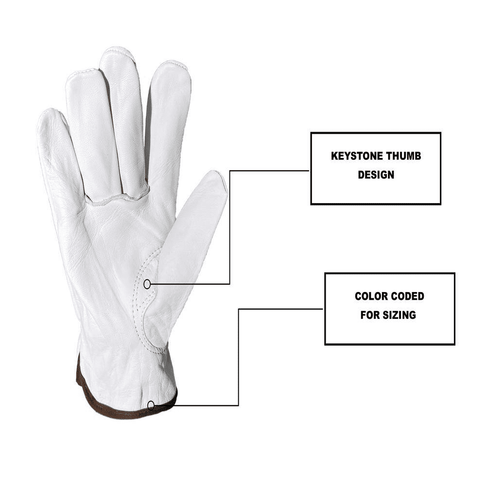 Built from premium, supple goat-grain leather, these Strongarm American Welding Co. Driver Gloves deliver a soft, broken-in feel from day one and mold to your hands over time. Goat leather offers an excellent strength-to-weight ratio and fine dexterity, making these a dependable choice for welding support work, construction, trucking, warehouse tasks, landscaping, and general mechanics. An easy-off wrist helps you slip the gloves on and off quickly, while the keystone thumb adds comfort and freedom of movement for gripping tools, steering wheels, or material handling. Naturally pliable yet durable, the leather stands up to daily use without feeling bulky, so you get confident control and long-lasting comfort on the job or in the garage.