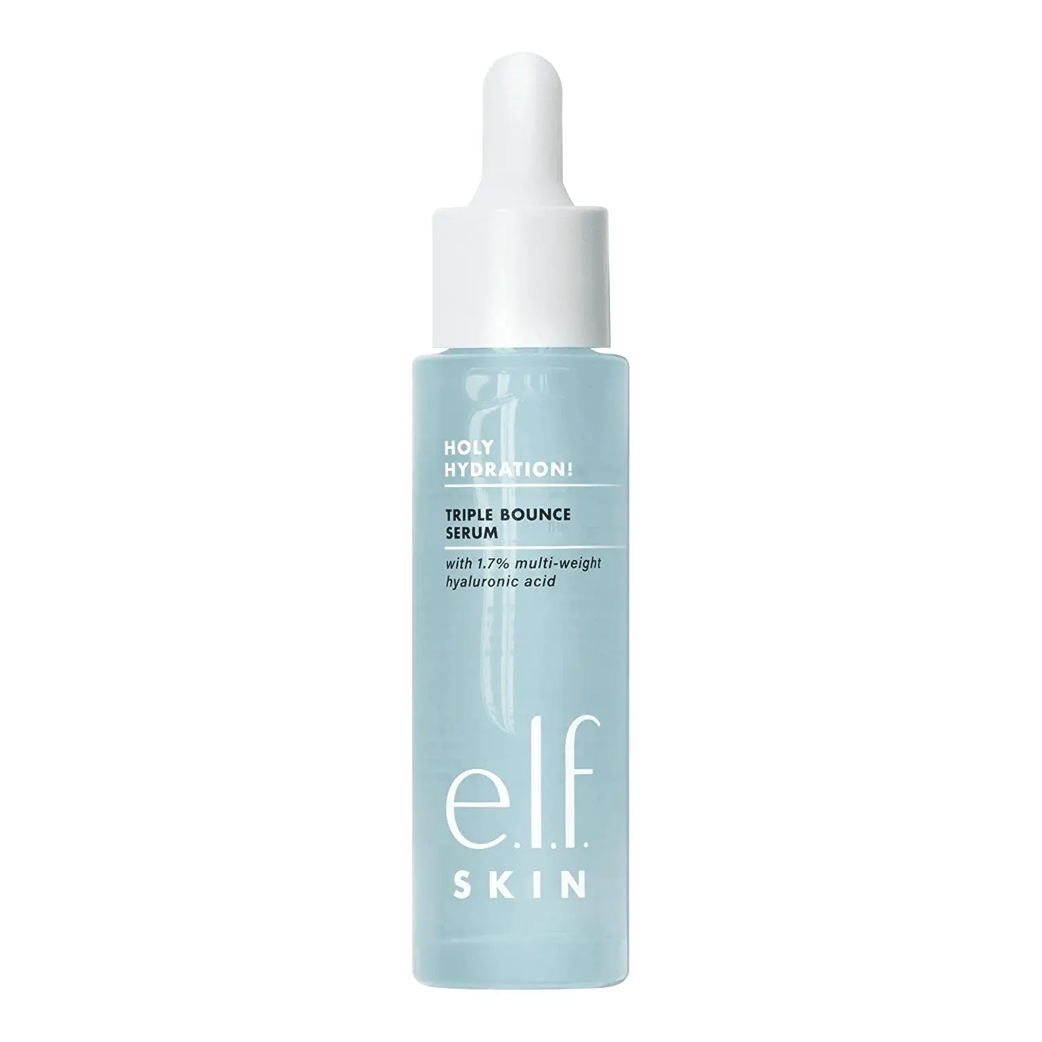 Get your bounce back and add an unparalleled boost of hydration to your skincare routine with e.l.f. SKIN’s Holy Hydration! Triple Bounce Serum. Infused with squalane and niacinamide, this serum helps reveal fresh, plump, and supple skin. This gel face serum is supercharged with 1.7% hyaluronic acid in 3 molecular weights (ultra-low, low, and high) to help deliver maximum hydration. Ideal for quenching dry skin, your complexion will feel more hydrated. Can be used morning and evening on freshly washed skin.