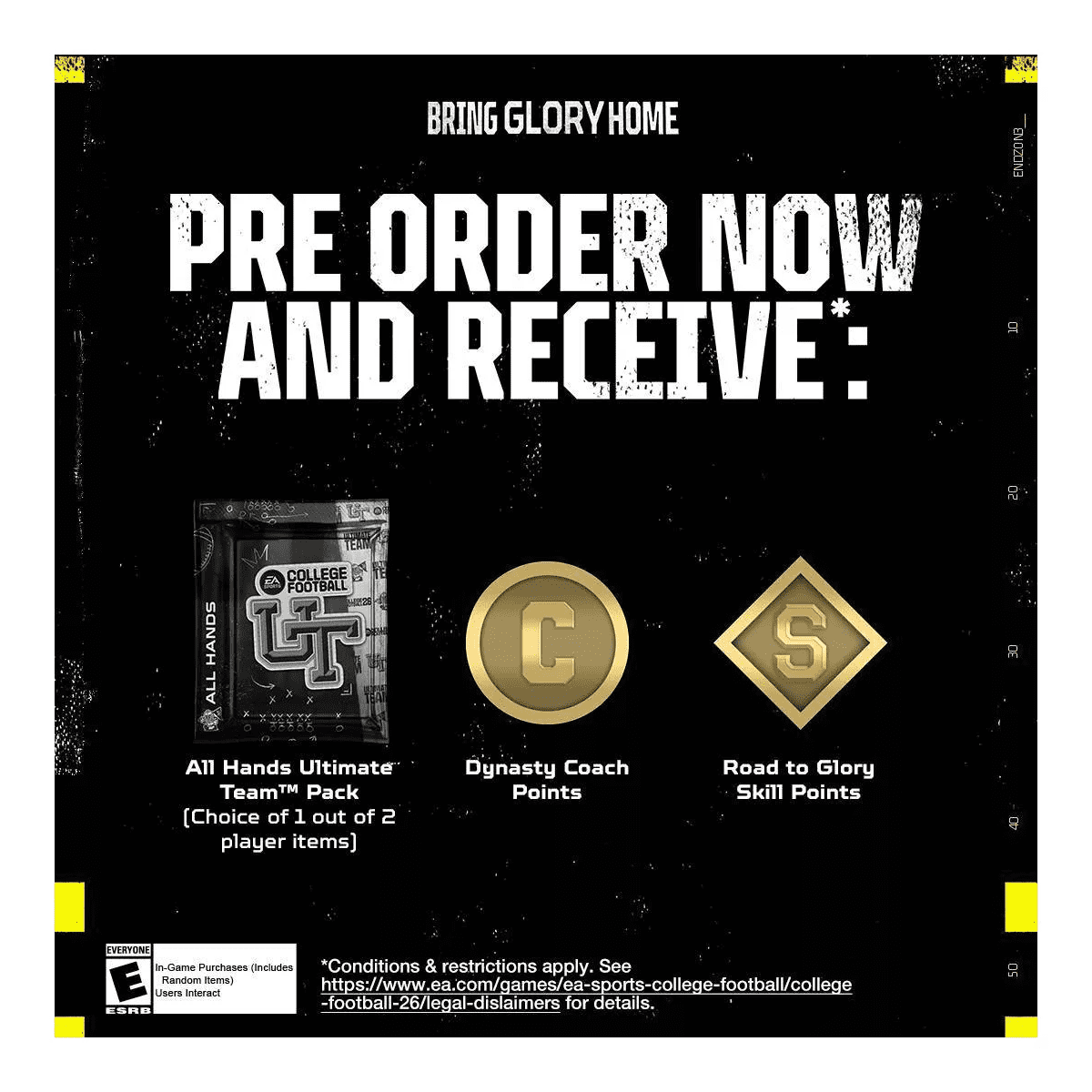 - Pre-order* EA SPORTS™ College Football 26 today and receive: