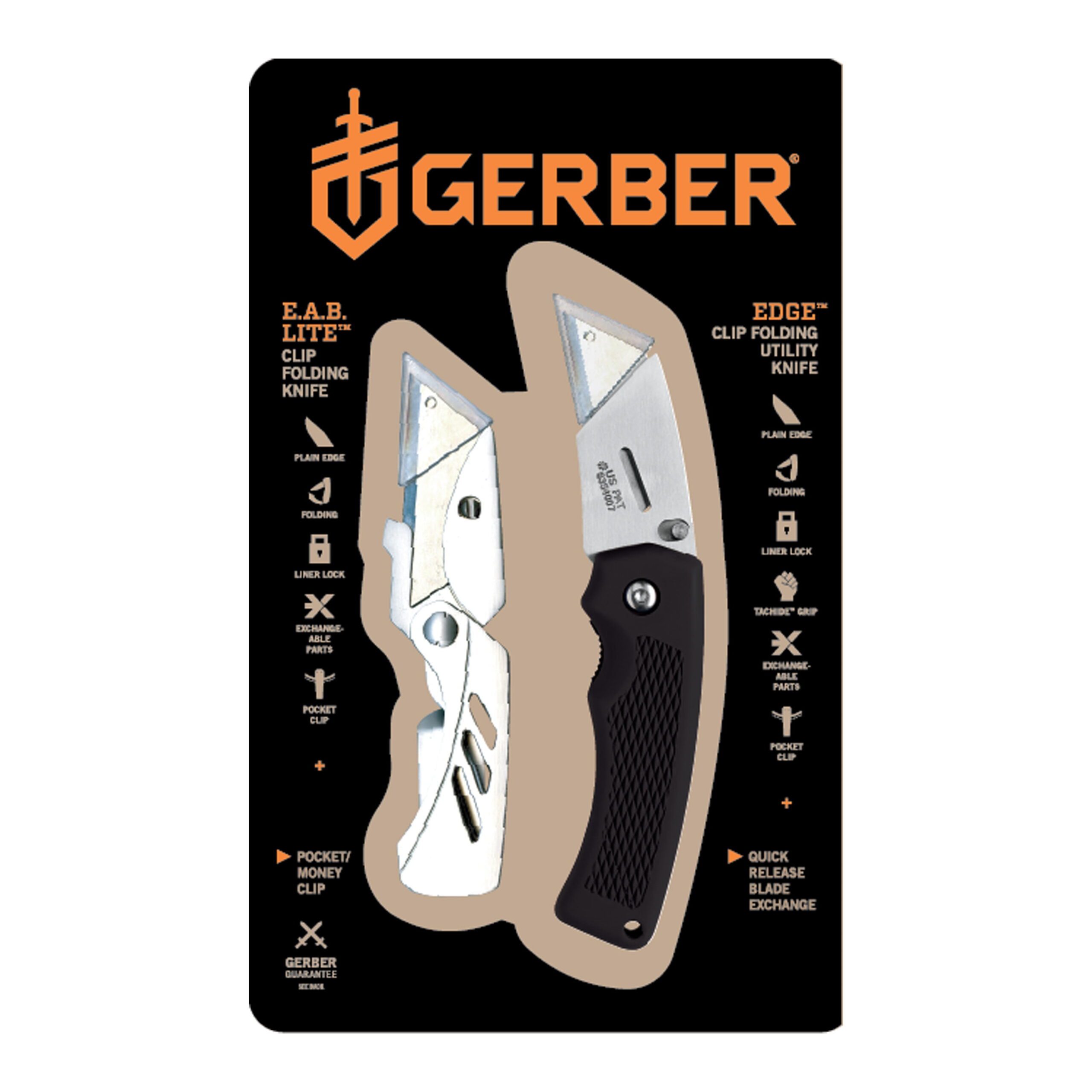 - The Gerber Gear Edge utility knife is loaded with on-the-site features including a spring lock for easy press and release blade replacement, a pocket clip for easy carry, and a readily available, easy to open utility blade.