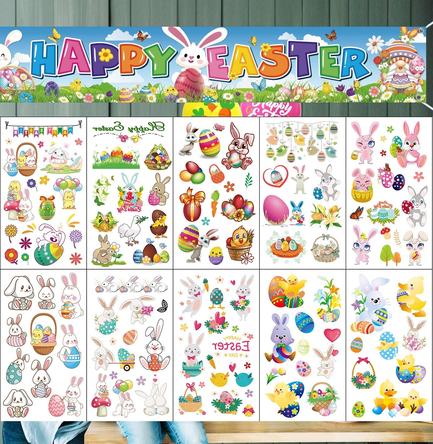 - Easter Basket Stuffers Temporary Tattoos Decor Gifts for Kids; These Easter basket stuffers decorations temporary tattoos are a delightful addition to kid’s Easter party favors! The set of Easter basket stuffers decorations temporary tattoos decor gifts includes 10 sheets 110pcs , featuring vibrant designs of Easter eggs, Easter basket stuffers, Easter bunny and Easter decorations. Perfect for kid’s Easter parties favors gifts, or Easter themed events, Kids will love these Easter basket stuffers decorations temporary tattoos, making Easter temporary tattoos for kids a fun and exciting choice.