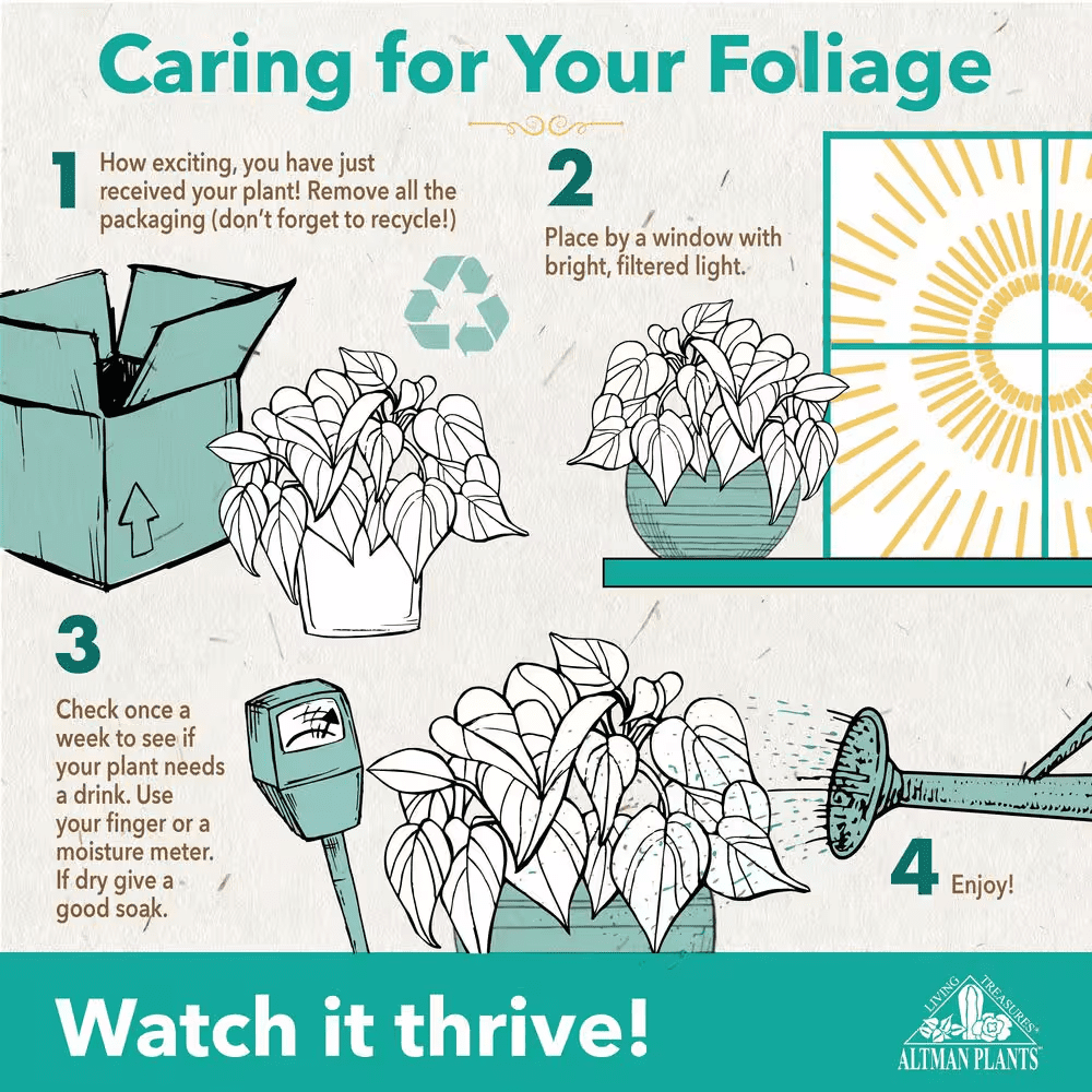 Our Foliage Grower’s Choice 12-pack is a hand-selected variety of easy care plants, fully rooted in 2″ containers. This exciting multi-pack will include 12 easy plants to maintain, including the following varieties: Aralia, Pothos, Dieffenbachia and Fittonia. Create a gorgeous indoor display with these beautiful assorted live plants. Varieties of Aralia like Aralia Dizygotheca Bianca, Aralia Dizygotheca Castor and Aralia Polyscias Ming Gold are evergreen shrubs or small trees featuring airy, variegated foliage with slightly pink veins that beautifully accent vibrant green leaves. Varieties of Pothos like Scinea Hawaiian Pothos and Scinea Marble Queen Pothos are hardy vine plants with glossy, leathery foliage that grow in ascending spirals and are variegated with creamy yellow and white colors. Varieties of Dieffenbachia like Dieffenbachia Amy Urc are considered tropical perennials with broad, oval-shaped foliage that is speckled with vibrant green and creamy white. Dieffenbachia Amy plants are often used as living room plants for an elegant look and improved air quality. Varieties of Fittonia like Fittonia Vibrant Pink Mini are live tropical evergreens with compact, oval-shaped leaves. The vibrant pink veins contrast with dark green foliage, making this spreading houseplant an attractive choice for home decor, a hanging plant or terrarium kit. The plants included in this collection have the potential to grow much larger than the size they are upon arrival.