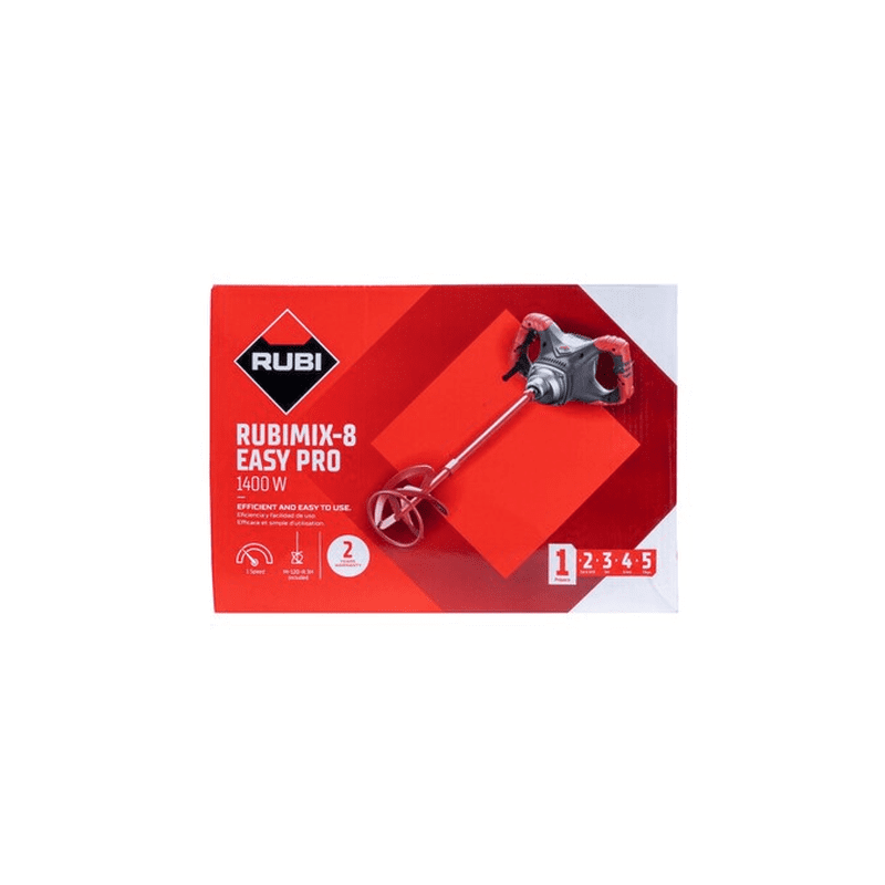 - The RUBIMIX-8 EASY PRO electric mixer comes with a 1400W power motor and a 1-speed gearbox that allows the progressive start-up switch to regulate the working RPM from 0 to 700