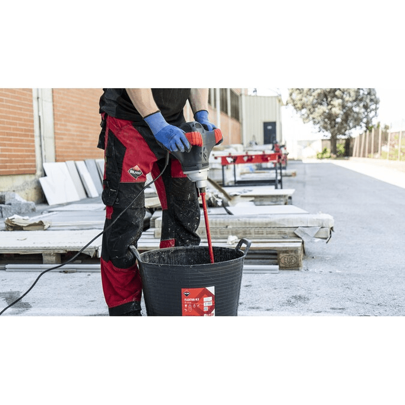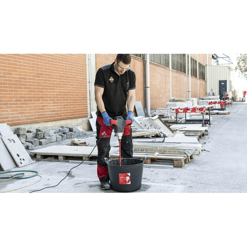 RUBI offers the professional ceramic tile installer the RUBIMIX-8 EASY PRO electric mixer with the firm idea of offering the same tool, versatility, and functionality. A mixer that, in turn, can meet the demands of professionals who work with cementitious adhesives, resins, paints, and other materials without compromising design and comfort thanks to its double handle with bi-material handles that provide more outstanding ergonomics during use.